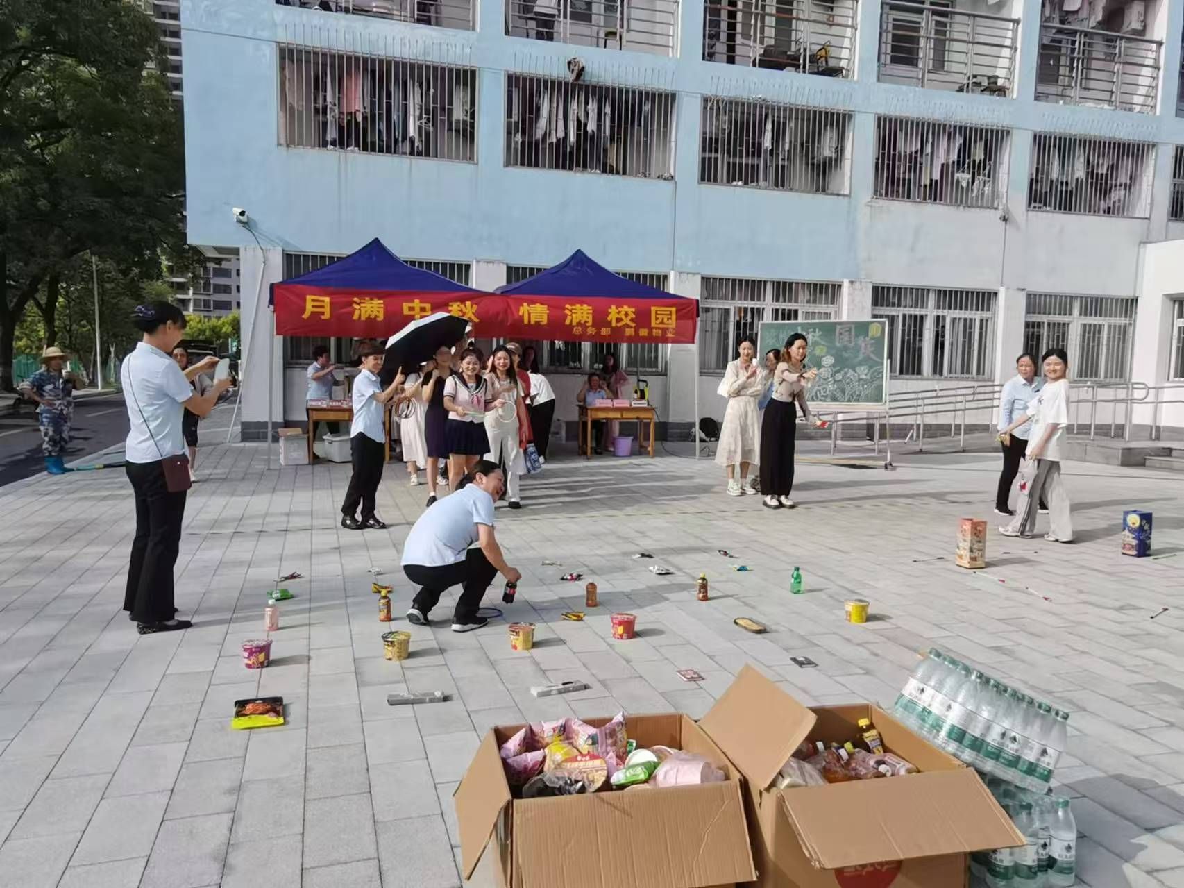 本网讯 为了弘扬和传承中华优秀传统文化,丰富校园文化生活,增强同学们的民族自信心和自豪感。9月14日,学生公寓管理服务中心联合学生公寓物业在学生社区南区学生宿舍5号楼门前和北区国旗广场,开展“月满中秋·情满校园”主题庆祝活动。