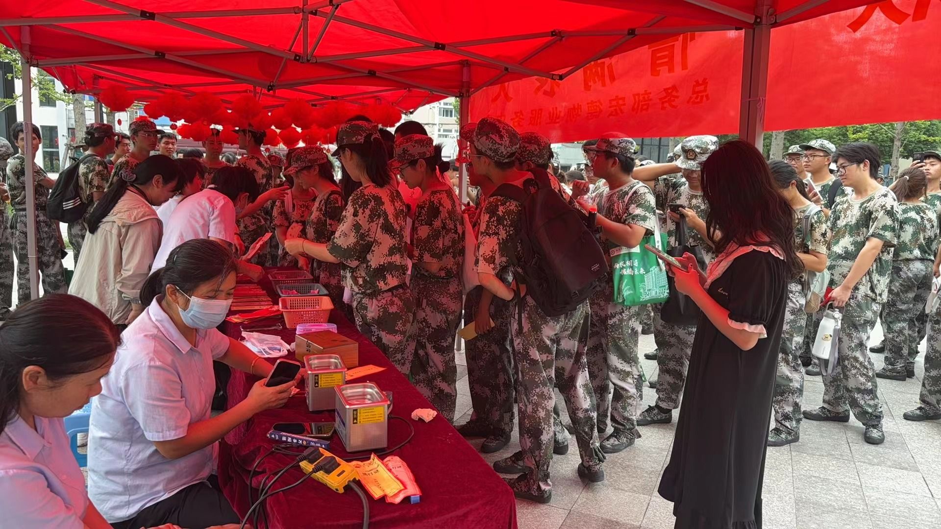 为了更好地服务同学,活动现场还设立了便民服务点。提供衣物、床上用品的缝补服务以及眼镜清洗,电动车检查、车胎及篮球打气、台灯维修等维修服务。