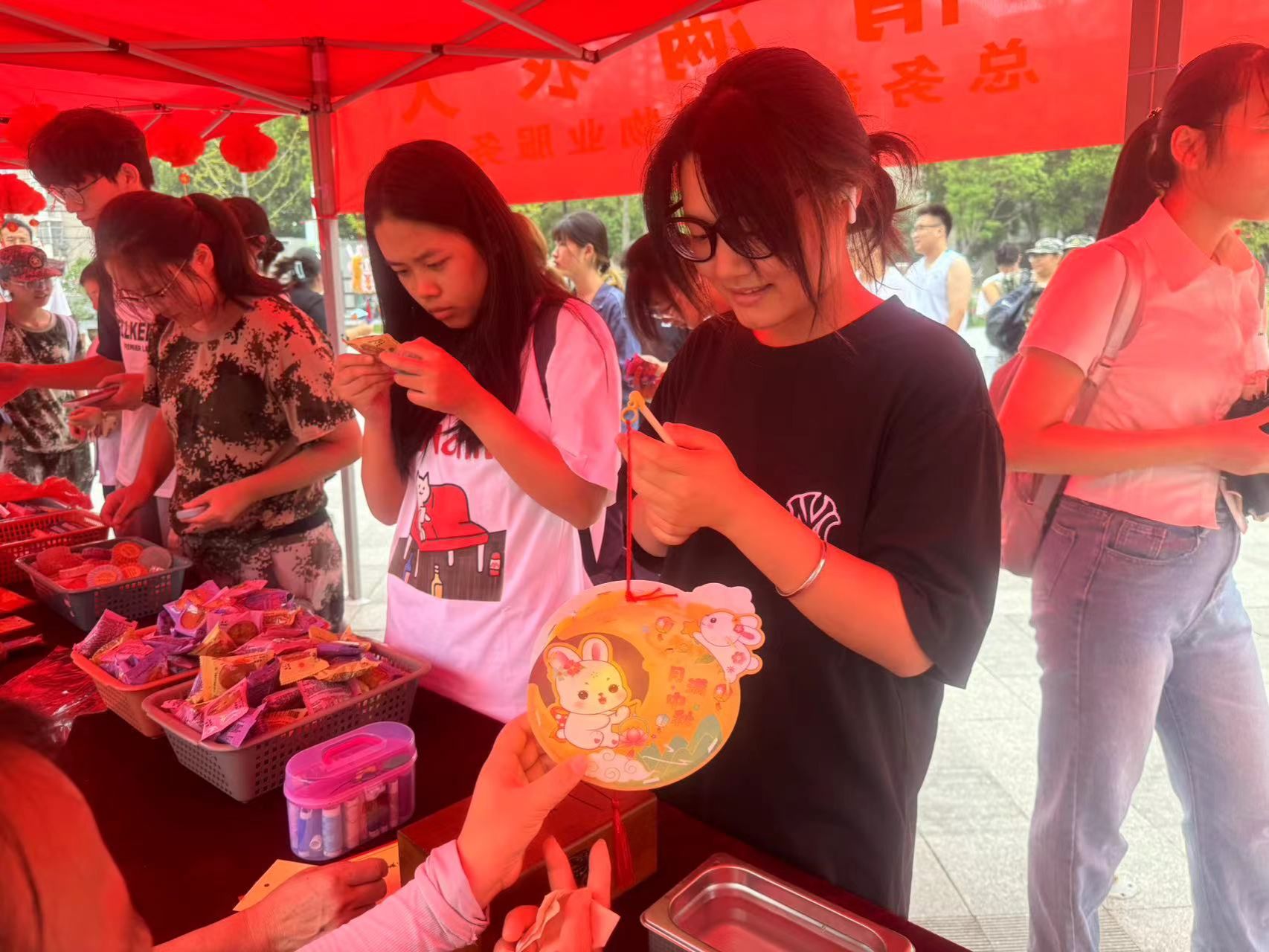 在活动现场,工作人员为同学们准备了精致的月饼、小零食和花茶,设计了玉兔套圈、趣味投壶、呼啦圈竞技等一系列精彩的小游戏,同学踊跃参加,整个活动充满欢声笑语。
