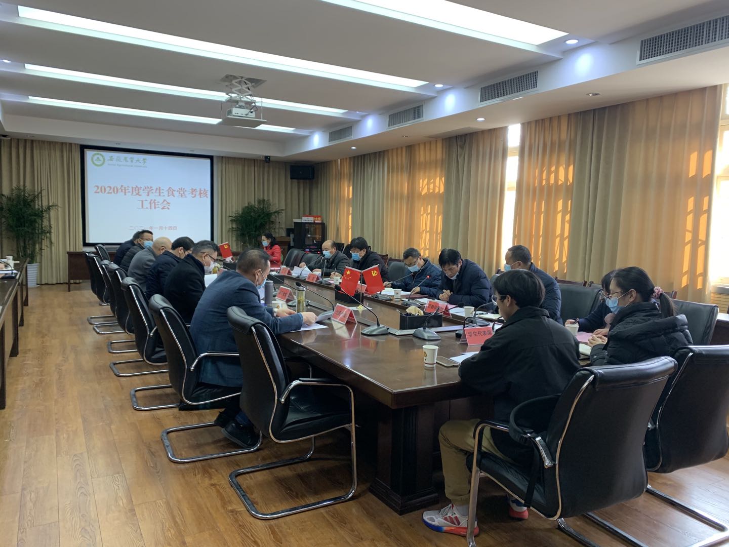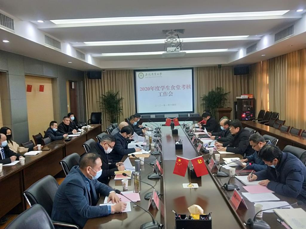 本网讯 为进一步规范学生食堂疫情防控、保供稳价、面向采购、制止餐饮浪费行为,严把食品安全关,全面提升后勤服务品质。1月14日下午,后勤保障处会同校财务处、学工部(处)、采购与招标中心、团委、工会、众安第三方食品监管服务公司和学生代表,对校园6家学生食堂开展2020年度综合考核。校党委常委、副校长韩军出席并讲话,各学生食堂托管企业法人和食堂经理参会。会议由后勤保障处负责同志主持。