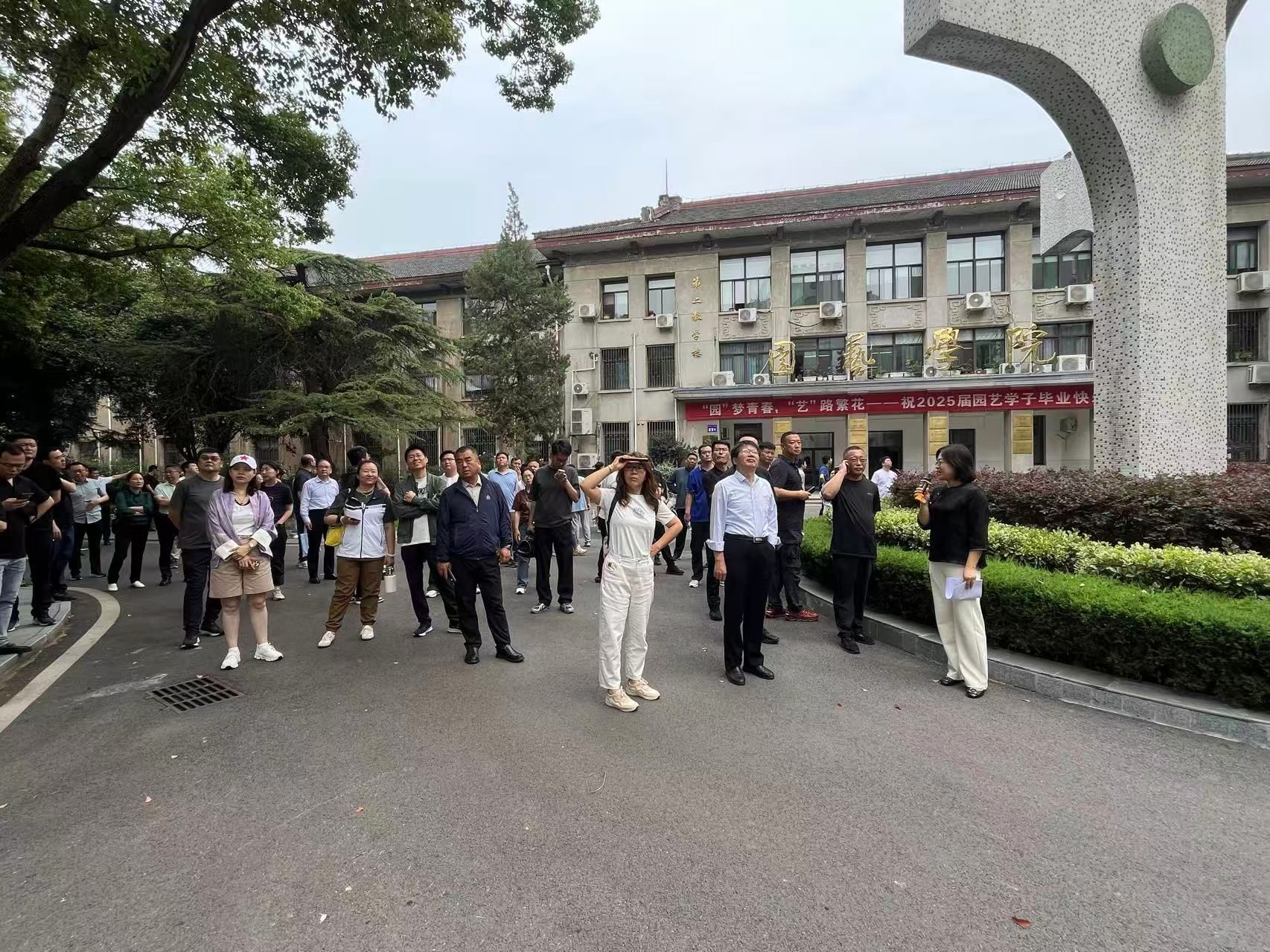 研修班一行围绕校园古建筑修缮与管理、智慧低碳校园建设、具有代表的校园建筑文化以及智慧食堂建设等工作,参观了学校勤政楼、现代林业研究中心、园艺楼、化学楼、钟楼、大礼堂等校园标志性建筑,详细了解了楼宇的修缮、养护等工作,交流了绿色校园创建和美丽校园建设的工作经验;深入西苑餐厅调研智慧食堂监管平台运行情况。