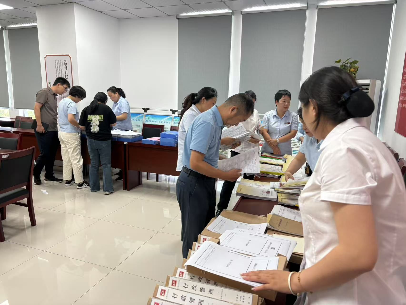 会上,物业管理服务中心及各维保单位就第二季度工作开展情况进行了总结汇报。考核小组成员认真听取汇报,并针对各维保单位的服务情况进行了交流发言。随后,考核小组对各单位的保障服务台账等材料进行了细致检查,并依据考核标准,结合日常表现、总结报告及台账材料等进行综合评分。
