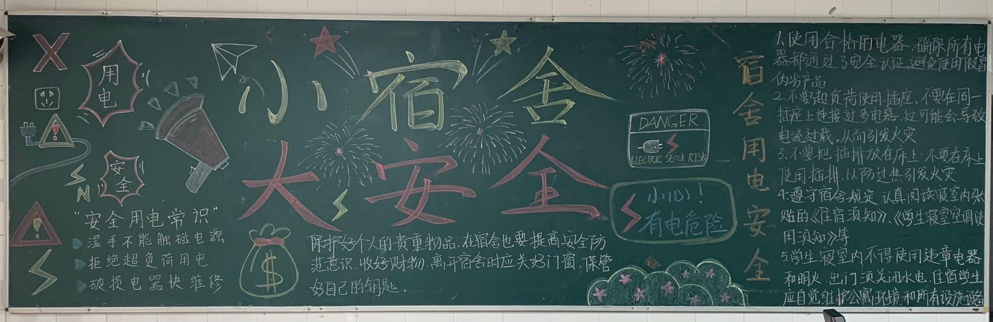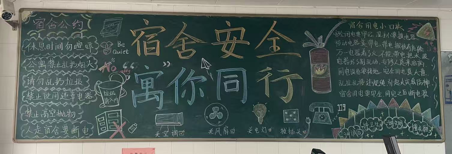 安全无小事,安全重于泰山。通过主题黑板报,拓宽了学生的安全知识,提高了学生的安全意识和防范能力,让同学们认识到自己是自身安全的第一责任人,也是宿舍这个“家”的共同守护者。让我们从我做起,从现在做起,携手筑牢安全防线,为青春年华保驾护航!(文图:李冬 初审:史青松 复审:洪长瑾 终审:胡启涛)