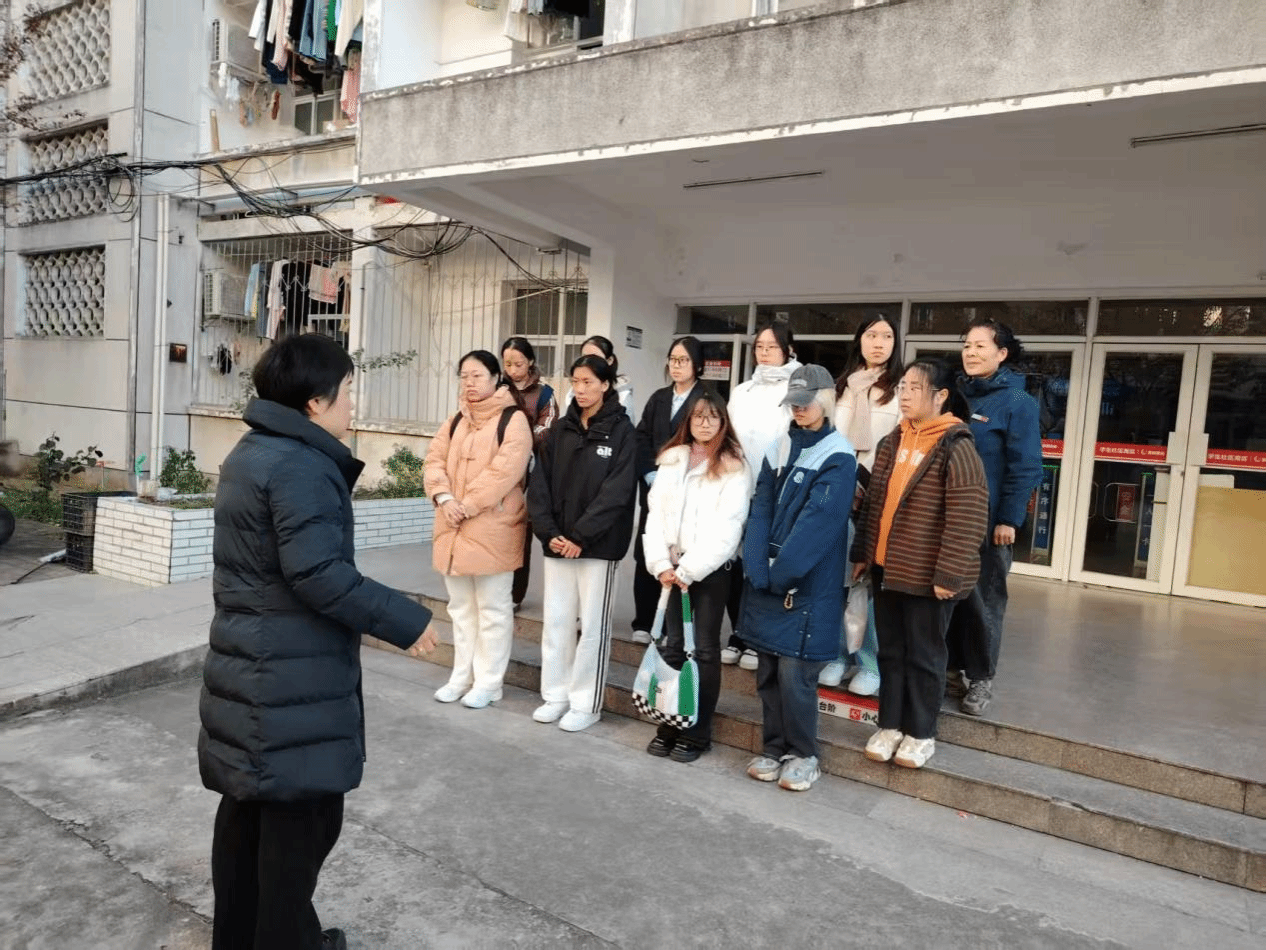 实践课:动手体验,感悟生活。理论课结束后,宿管工作人员带领学生们来到学生社区南区宿舍楼,开展了一场别开生面的“宿管体验课”。学生在工作人员的指导下,进行宿舍安全巡查、公共区域清洁维护及设施设备报修等日常工作,亲身体验宿管工作的细致辛劳与责任。工作人员还现场演示消防器材使用、介绍突发事件处理流程等安全常识,师生共同整理宿舍楼内的“共享服务角”,补充应急物资(如常用药品、小工具等),并围绕宿舍生活开展座谈,分享彼此的感受与建议。
