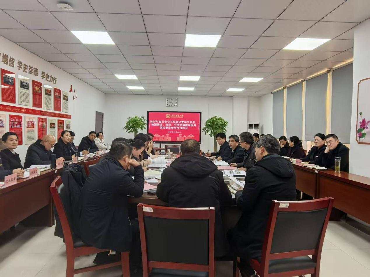 会上,共同学习了《关于提升学校领域本质安全水平的工作方案》,通报了2025年秋季学期食品安全专项检查及整改情况;总务部及被考核单位相关负责人分别汇报了物业、食堂等年度相关工作开展情况。与会人员围绕学生食堂、校园物业、电梯及中央空调维保等服务提出意见和建议,进行总体测评。