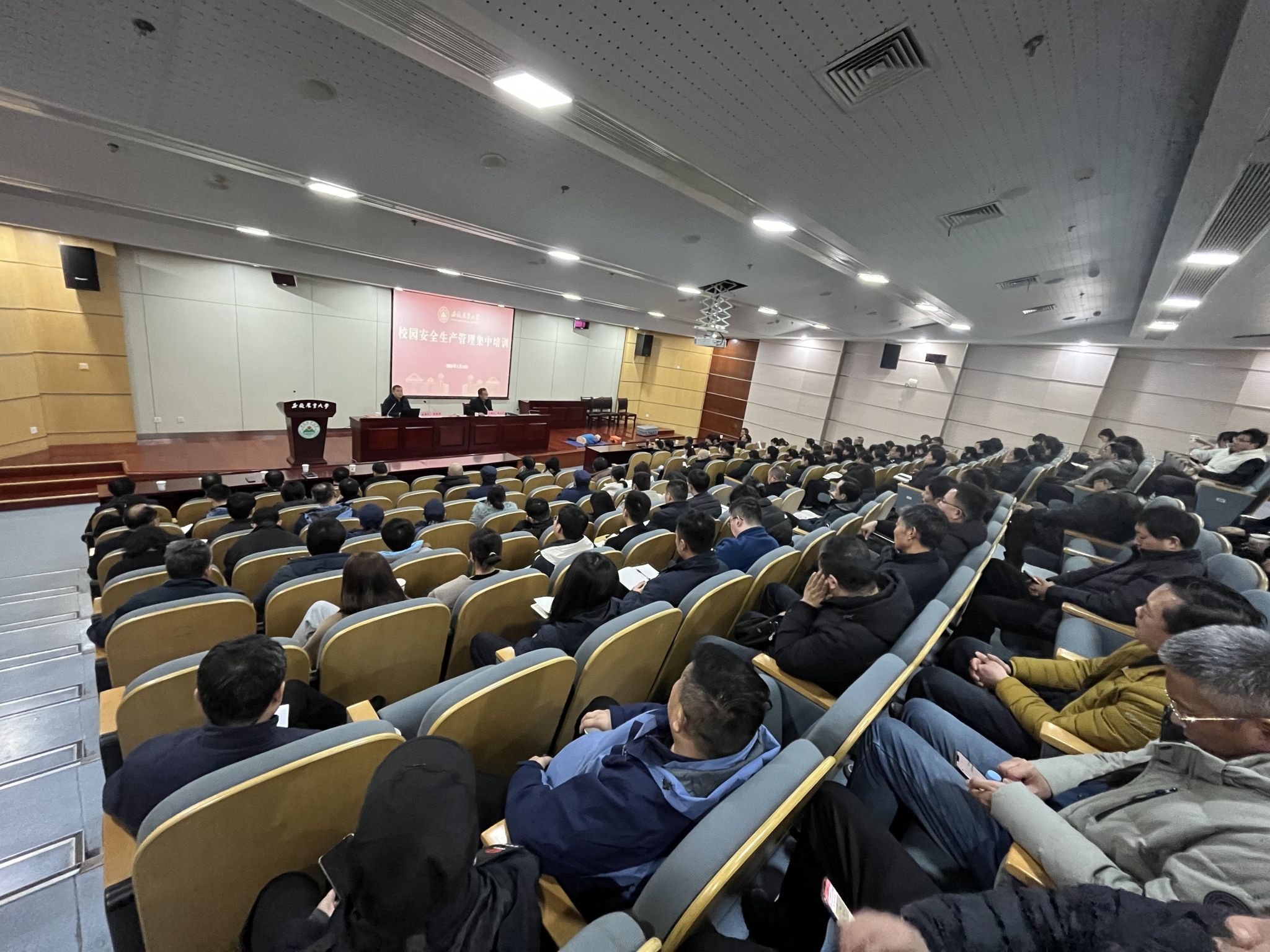 本网讯 为全面落实安全生产主体责任,提升管理人员风险防控与应急处置能力,筑牢校园安全屏障。1月14日下午,我校在图书馆第二报告厅举办校园安全生产管理和应急处突集中培训,总务部、国资处、保卫处、图书馆(档案馆)、实验室安全管理中心(生物技术中心)、新校区指挥部办公室、体育部、各二级教学科研单位等负责校园安全生产的部门相关负责人,食堂、宿舍、工地、安保、实验室等重点领域一线工作人员150余人参加培训。