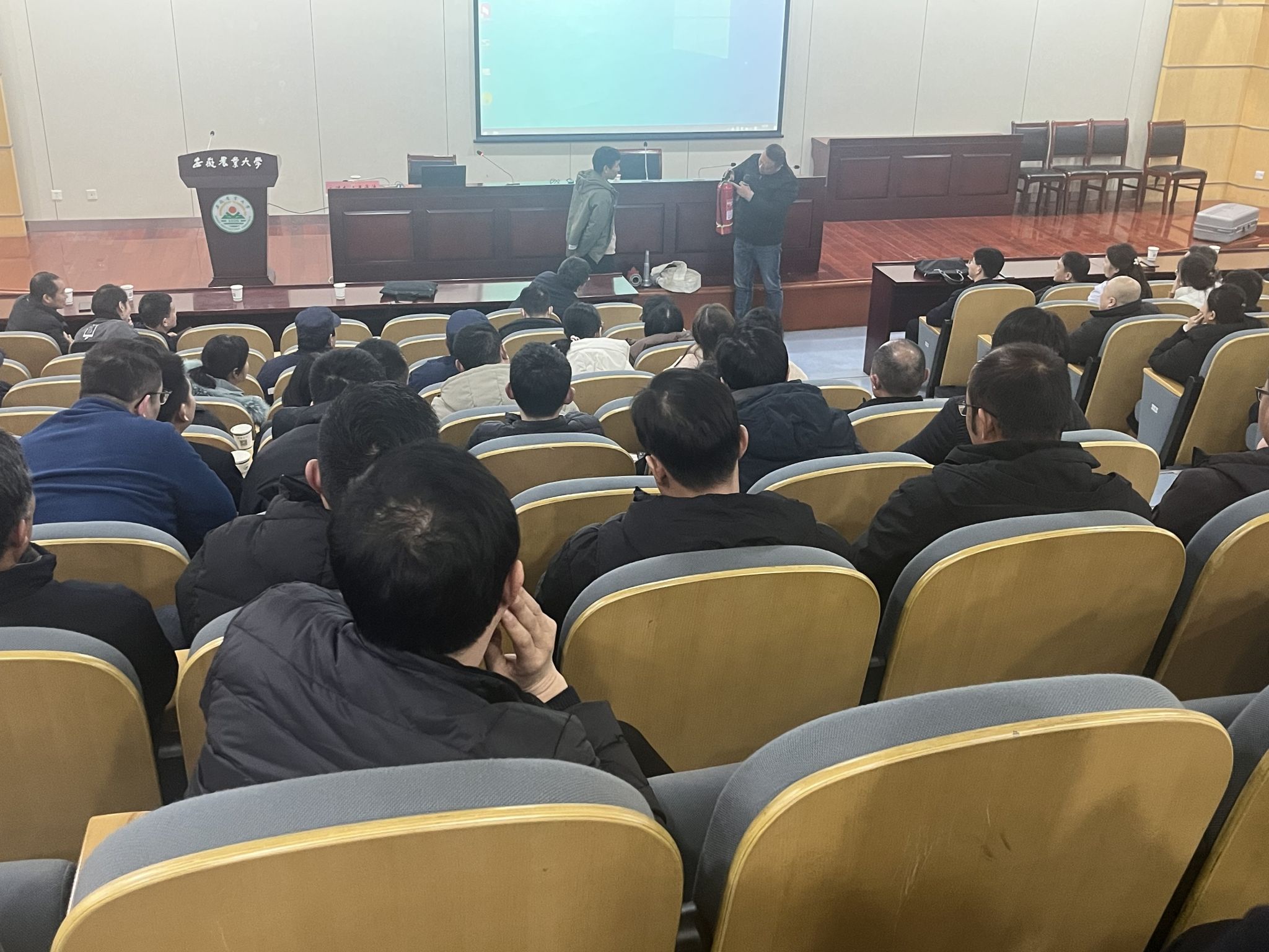 合肥市蜀山区应急管理局副局长王承浪以《以案为鉴筑防线,守责笃行护校园》主题作培训报告,从典型事故和案例分析入手,深刻分析了当前高校安全生产面临的严峻形势,剖析了近年来高校安全事故案例的惨痛教训;深入解读《安全生产法》,详细阐述构建 “大安全大应急”的安全管理体系;聚焦高校系统安全风险防控重点和提升安全管理的六大行动,围绕国家安全生产方针、政策,结合学校安全工作实际,就筑牢安全防线、推进安全治理,提出了针对性的对策建议和系统化的工作思路。培训中,保卫处、总务部校医院分别开展心肺复苏(CPR)基础技能、自动体外除颤器(AED)操作、消防器材使用等实操演练。