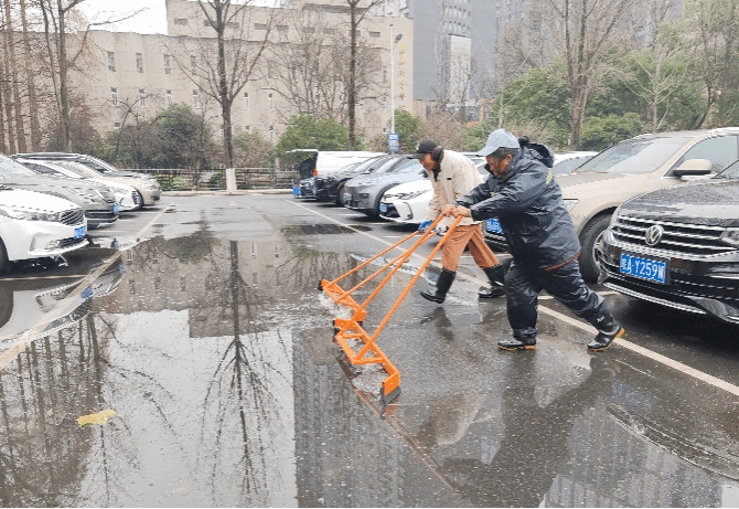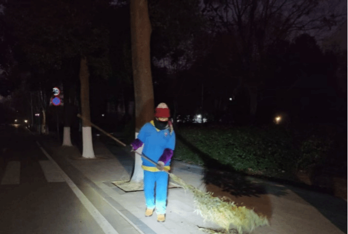 黎明5:00,晨幕徐徐拉开,校园开始渐渐喧嚣,总务后勤的物业人开始一天的清扫保洁,一片落叶,半截枯枝,满地冰霜,用“一抹蓝”“一抹红”守护校园的一花一树、一草一物。