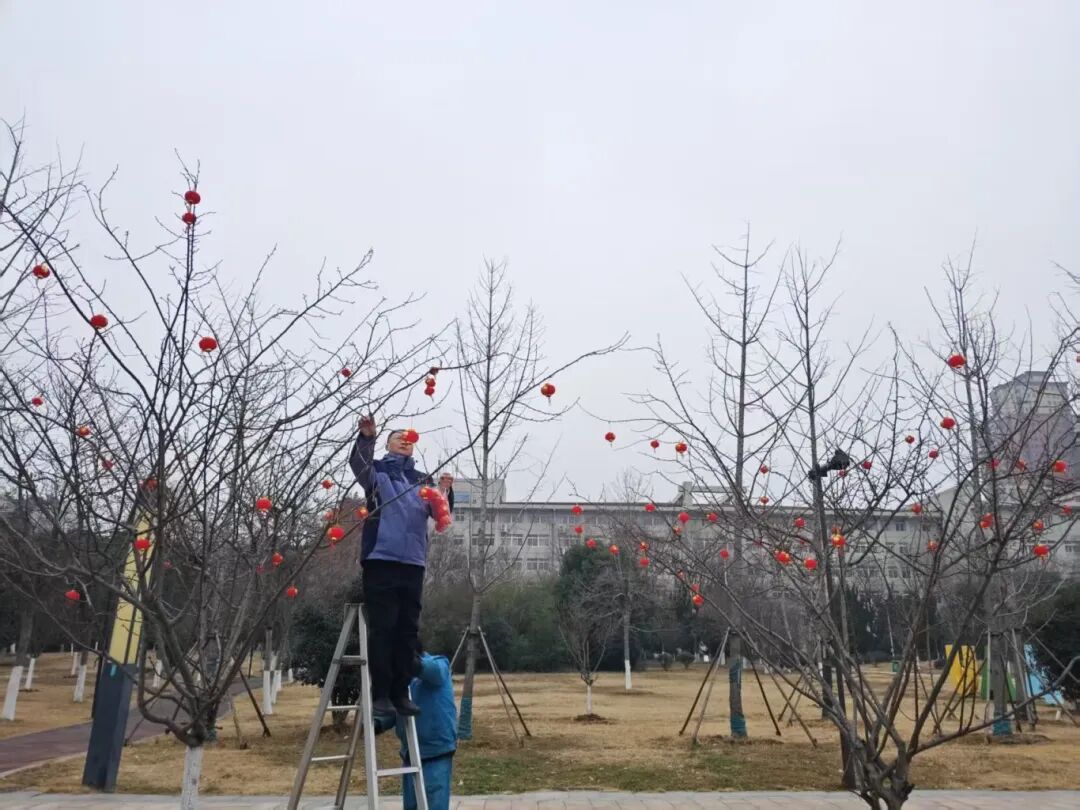 大红灯笼已高高挂起,校园的彩灯在树花丛中闪烁,绿化师傅还在修剪枯枝、防寒保暖,校医院的医生还在为师生把脉问诊,收发室的老师还在忘我忙碌,物业师傅还在清扫校园……一切都是井然有序、一切都是自然而然、一切都是蛮好的和美诗画校园……