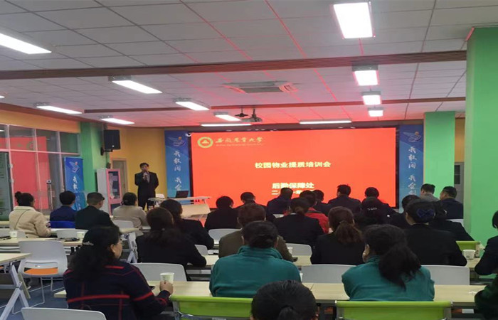 本网讯 为适应学校教学、科研以及师生等不断增长的服务需求,不断建设优质高效后勤服务保障体系。10月21日下午,后勤保障处在大学生创客空间路演大厅举办校园物业提质服务专题培训会。后勤保障处副处长史青松,物业管理服务中心、学生公寓管理中心相关工作人员,各物业公司经理、管理人员和员工等40余人参会。培训会由后勤保障处副处长郭晓东主持。