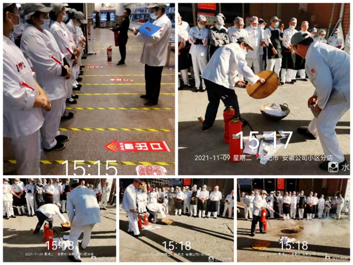 活动现场,思源食堂经理带领分店经理和全体员工60余人学习了基础的消防安全知识、演示了必备的安全技能,特别是针对学生食堂可能出现的失火应急处置等内容进行了重点演练,做好“防范于未然”。