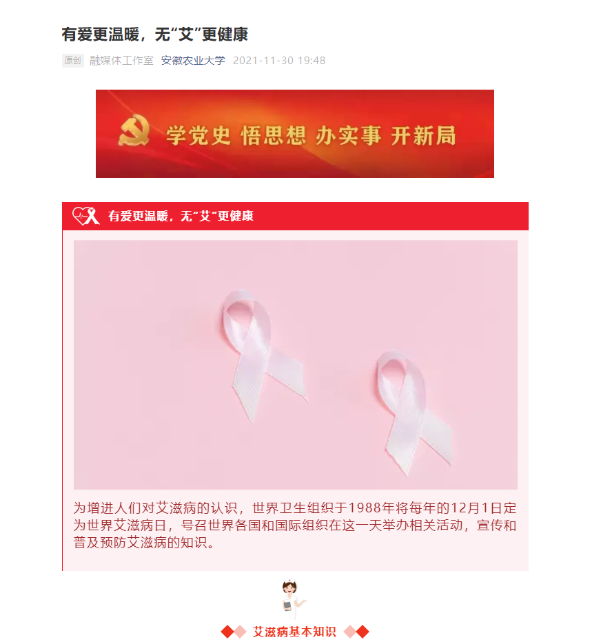 “生命至上、终结艾滋、健康平等”系列活动在师生们的热情参与下圆满落幕。据悉,我校在开展系列艾滋病健康教育中,将线下活动和线上宣传有机结合,多途径引导学生形成健康的价值理念,提高自我防护能力,预防或最大限度减少危险行为的伤害,强化了学生的保护意识、诚信意识和责任意识。(通讯员:王政)