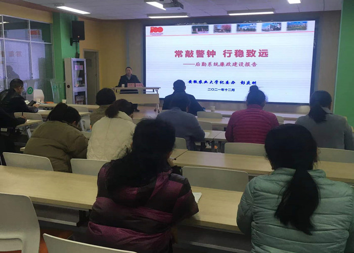 针对我校后勤机构改革以来防腐风险点多,战线长、任务重的情况,彭庆刚围绕十八大以来国家的防腐决心,研判防腐之势;结合发生贪腐给自己、家庭、组织造成的危害,揭示贪腐之害;深刻剖析人性、贪腐的本质,揭露贪腐之源,明确提出了不断加强自律和他律,造就清廉的后勤队伍,为我校的“双一流”建设,提供一流的后勤保障。