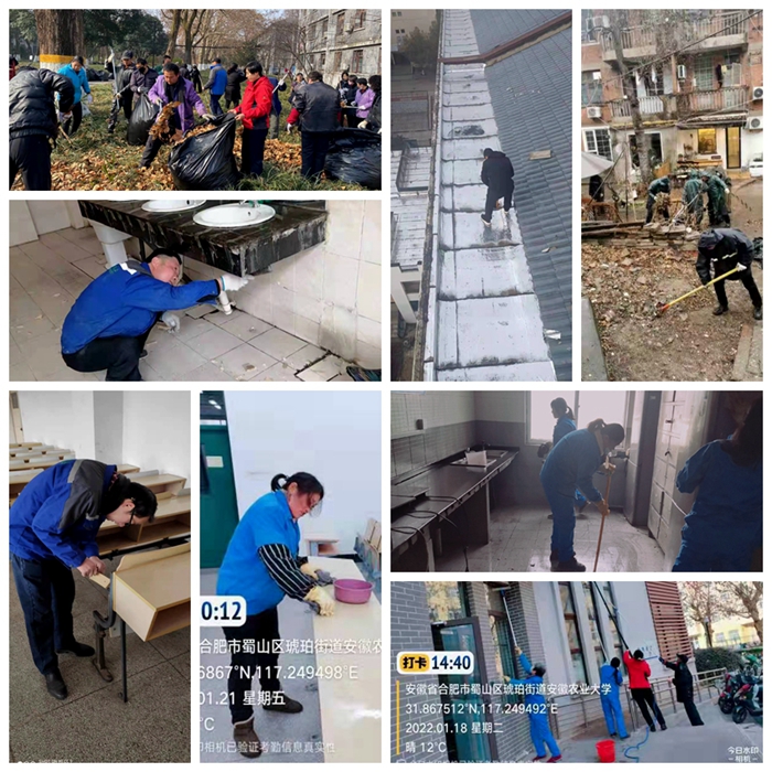 本网讯 近日,各驻校物业公司在后勤保障处的指导下,坚守岗位,有序开展教室设施维修,检查楼宇屋面情况,提升卫生细节,清理卫生死角,为喜迎新春,营造一个整洁、安全、祥和的校园环境积极行动。(何兵 通讯员:王政)
