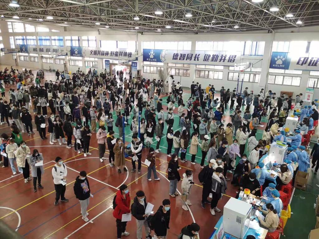 本网讯 根据国家、省市新冠病毒疫苗接种工作统一部署,为强化全民免疫屏障,保障全校师生健康,我校于3月3日、4日在校内体育馆集中组织新冠疫苗“加强针”第二次补种工作,本次接种的对象为全校完成全程接种两针剂新冠疫苗满6个月、年满18周岁及以上的师生,两天内共计完成了近9900名师生员工“加强针”的接种。