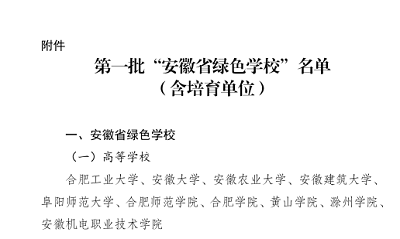 本网讯 近日,省教育厅公布了第一批“安徽省绿色学校”(含创建单位)名单,全省共有10所高校获批,我校位列其中。