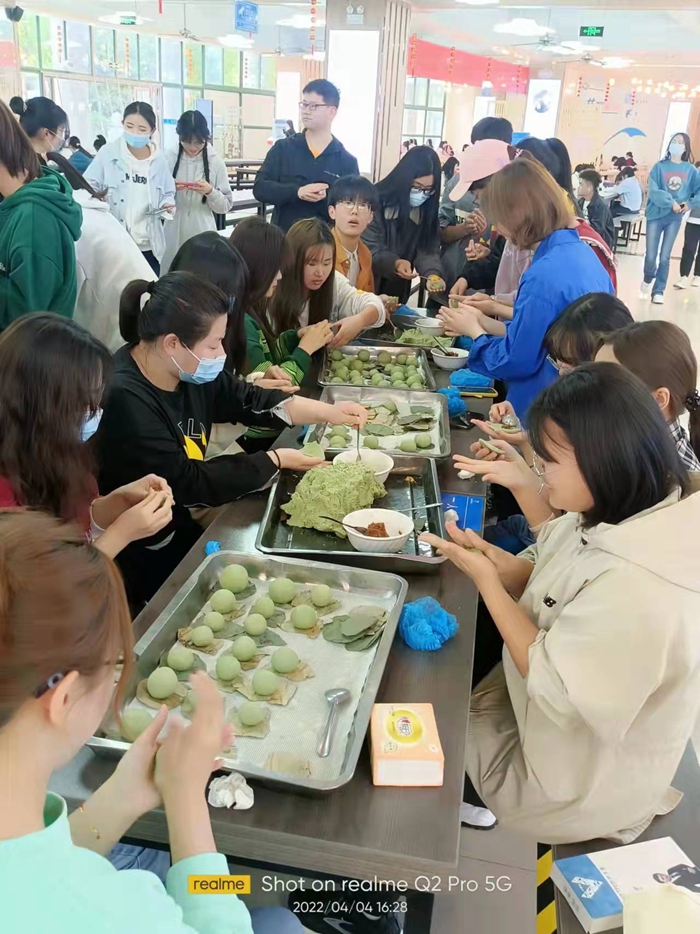 “小小青团,清明泛香”。通过组织清明假期学生食堂系列文化活动,让同学们进一步了解中华民族传统清明节日的内涵,怀念逝者,祭祀祖先,缅怀先烈,继承传统习俗。让当代大学生接受传统教育,培养爱国情怀,更加热爱生活、热爱学习。(胡明胜 通讯员:王政)