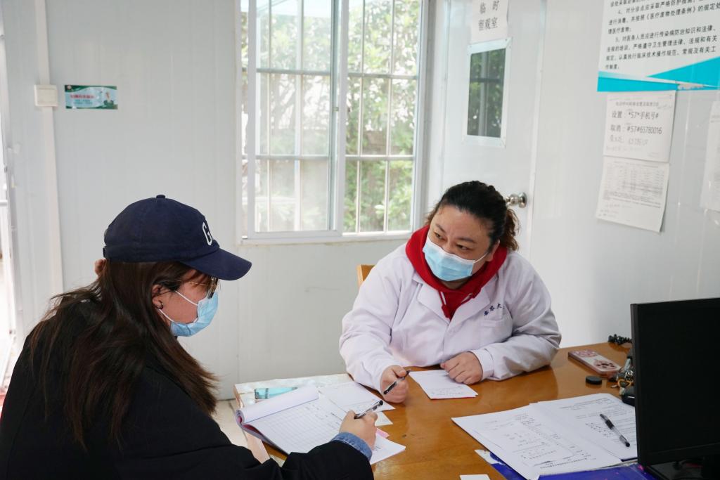校医院医务工作者为身体不适的学生预检分诊