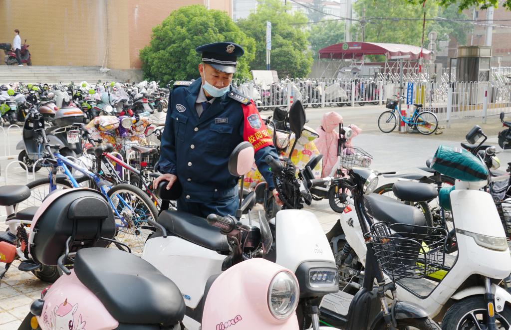 保卫人员摆放电动车