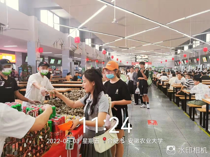 本网讯 端午佳节,后勤保障处组织校园食堂认真筹备“毕业季·端午情”系列活动,紧密结合反食品浪费宣传教育,开展“光盘光荣”、“你光盘,我赠送”等主题活动。端午节期间,校园食堂为光盘者赠送粽子、咸鸭蛋、饮品等。本次活动校园食堂共计送出粽子、咸鸭蛋等超过20000份,赢得了广大学子的喜爱和认同,身在安农,体会到了如家般的温暖。