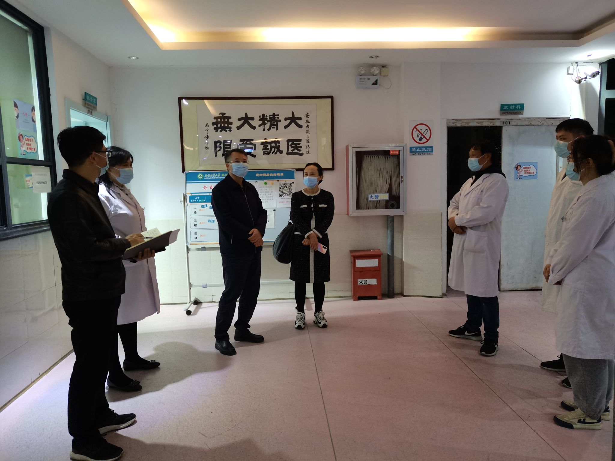 校领导察看了夜间预检分诊室、隔离观察室、挂号室、药房、医生诊疗室,详细了解校医院夜间疫情防控和医疗服务保障情况,对大家坚守一线、日夜奋战、守护师生健康表示诚挚的感谢。