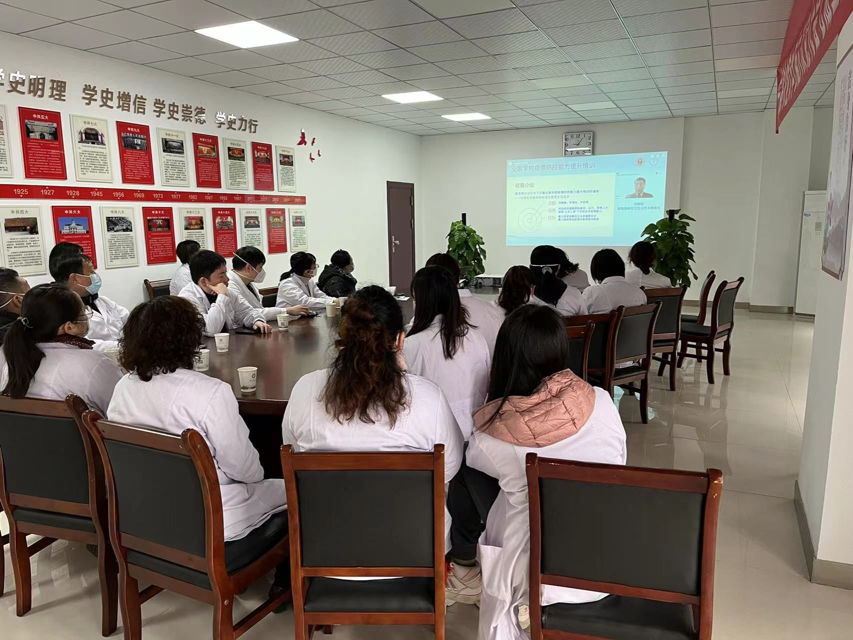本网讯 1月13日上午,我处组织校医院在后勤保障处会议室开展健康驿站建设专题培训,校医院全体医务人员、健康驿站后勤保障相关工作人员等近30人参加培训,会议由后勤保障处副处长史君华主持。