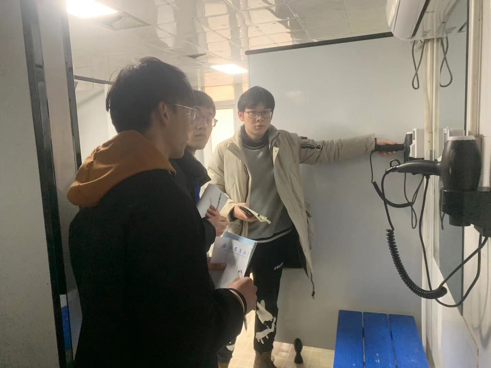 民生内容“暗访查”,面对面倾听意见。为了让学生返校能够看到“问题”的解决、“暖心”的变化、“实在”的成效,确保开学工作顺利有序。校党委书记常业军多次带领党政办、机关党委、教务处、基建处、后勤保障处等部门负责同志,“四不两直”深入教室、食堂、宿舍、浴室、厕所、工程建设现场等,检查督导开学准备、环境整治和学生关注问题的解决落实等情况,现场协调加快进度。面对面征求师生的意见建议,了解学生的所思所想所盼所求,要求相关部门聚力落实。后勤保障处、保卫处等单位相关工作人员对校园商超、快递中心、集中浴室、配电房、热水系统、空调电梯、路灯、水电官网、消防设施进行了巡查、检测,确保安全有效运行;众安第三方食品监管公司专业人员,特别是学生监督员,对食堂开展了多轮次的检查督查,切实让学生“参与办、监督办、说了算”,质量或卫生不合格坚决不允许开业,让学生自己参与守护好“舌尖上的安全”。