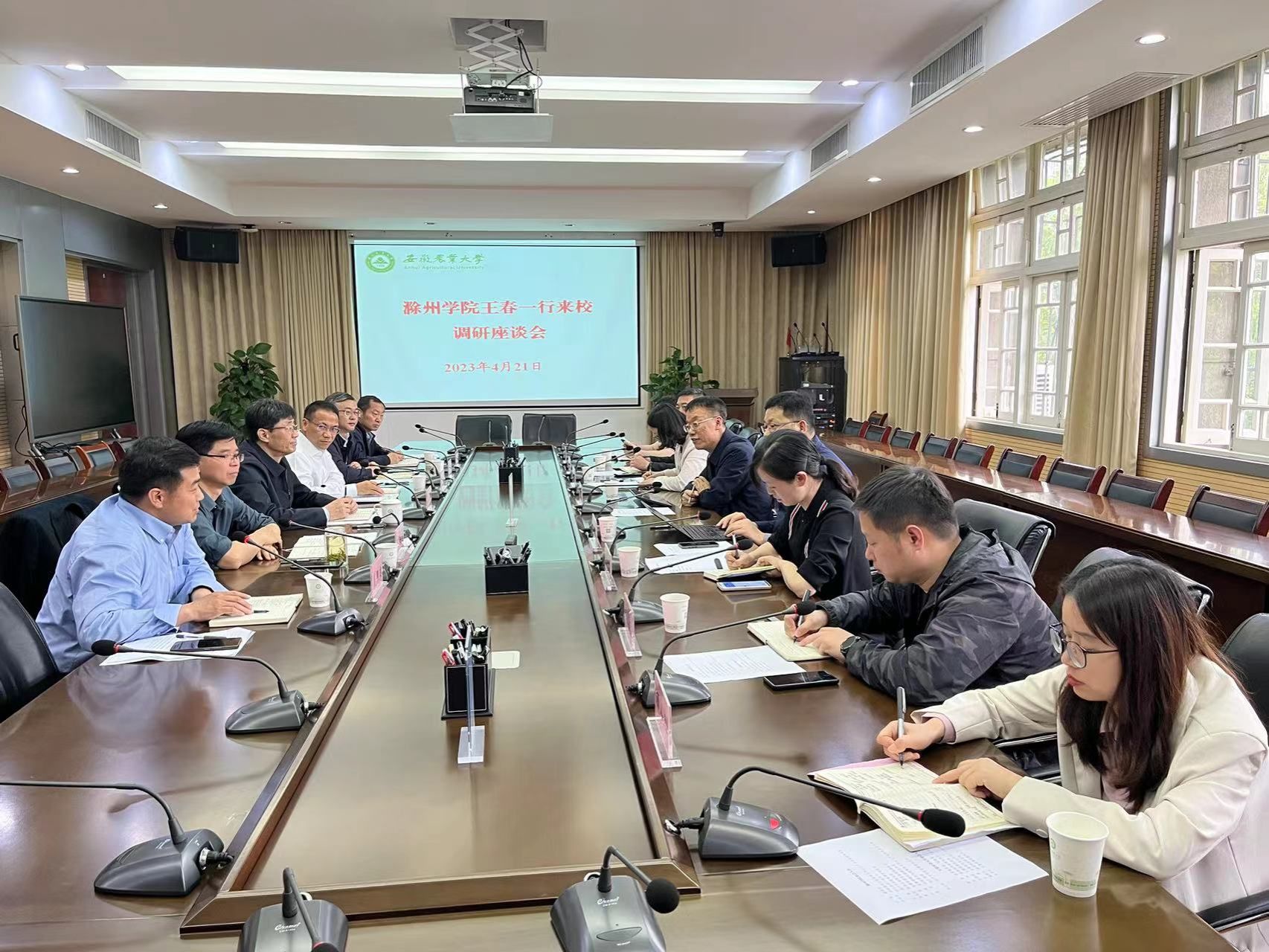 韩军介绍了学校的办学规模、依法行政、资产管理、实验室安全、后勤保障等方面情况,王春介绍了滁州学院的发展历程、办学规模、社会服务等方面工作。两校相关部门负责人交流了行政管理、实验室管理、招标采购、学生社区建设、师生参与等工作的经验做法,还讨论了公车租赁、基础建设、校园绿化规划、科技服务地方发展等工作,并希望今后开展更加广泛的交流和合作,推动和促进学校高质量发展。