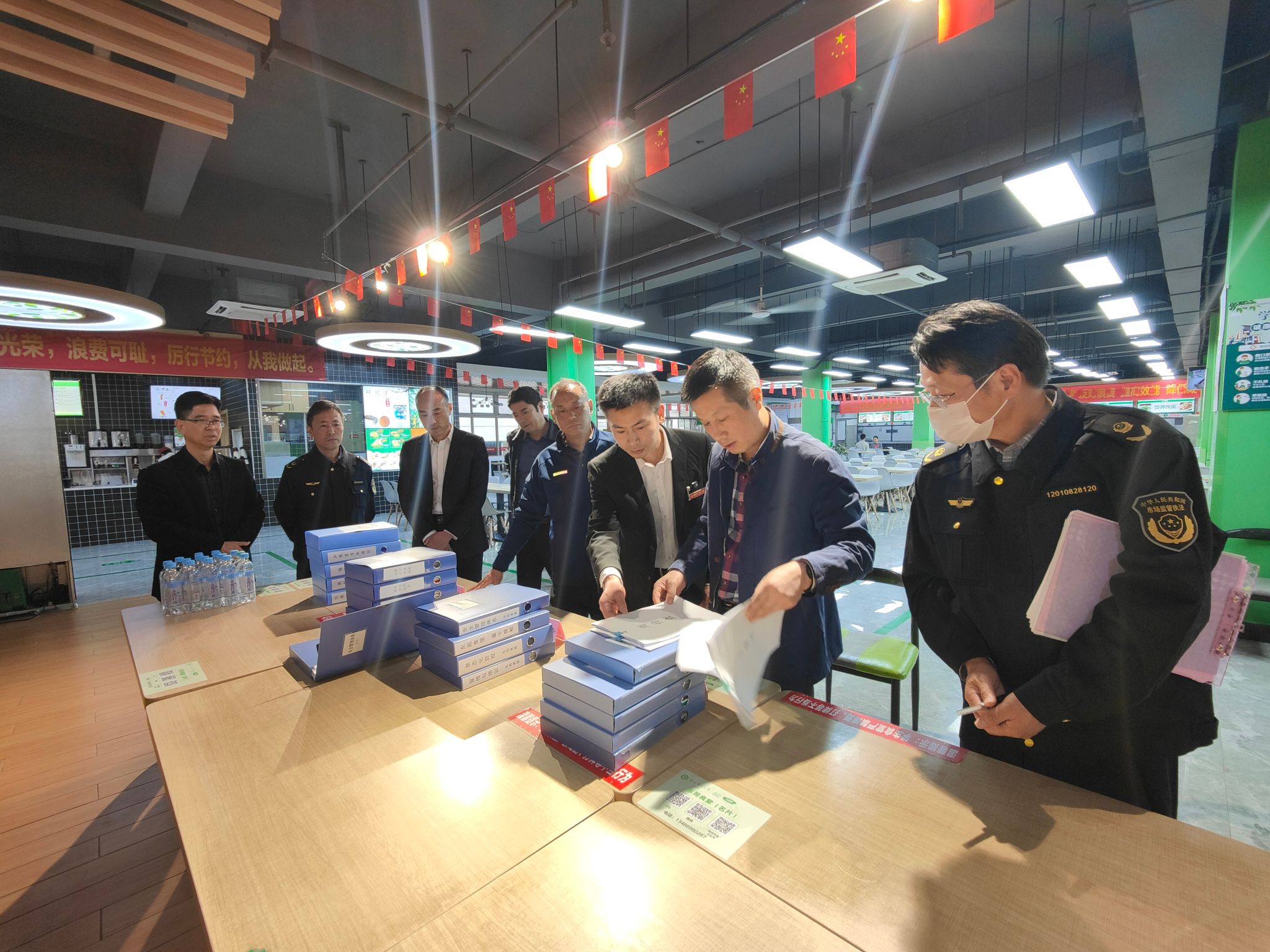 本网讯 4月28日下午,蜀山区委常委、人武部政委李军,蜀山区市场监管局、琥珀街道主要负责人等来校检查食品安全等工作,后勤保障处负责同志陪同检查。