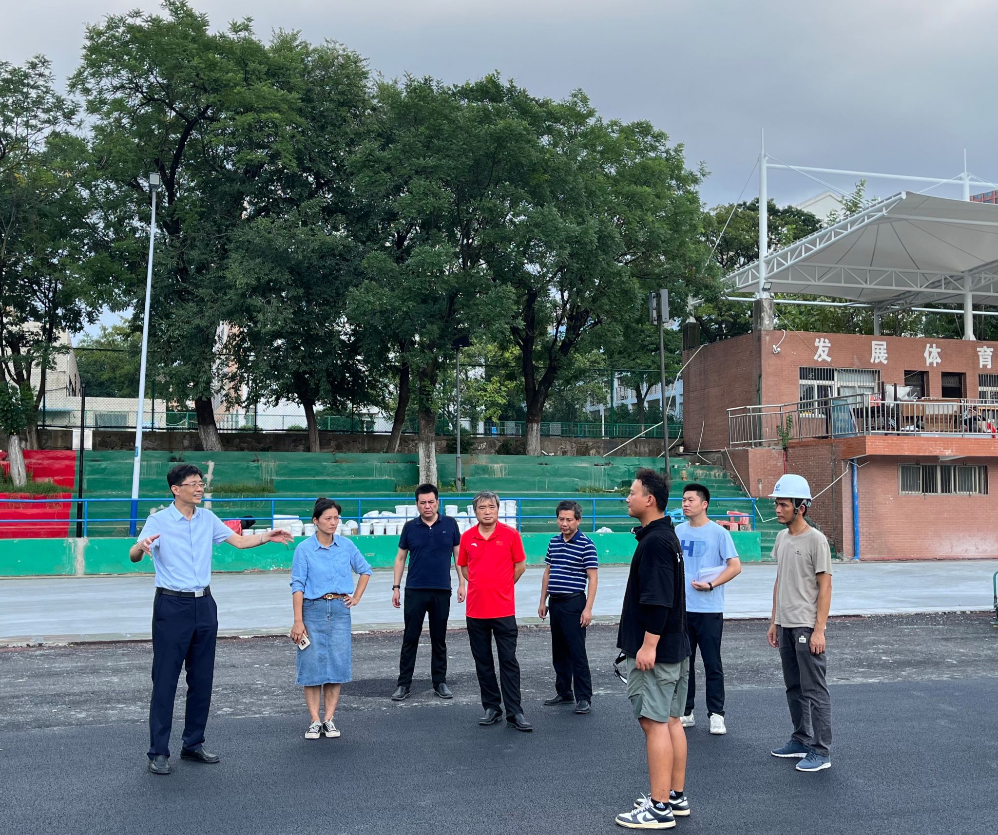 本网讯 8月2日-8日,校党委常委、副校长韩军在审计处、总务部相关负责人的陪同下,先后多次深入第一运动场、研究生公寓B楼、动物医院、蜀山区天敌微生物扩繁基地、33号楼拆迁现场、学生宿舍实地检查了暑期在建工程的进展情况,并看望慰问施工人员。