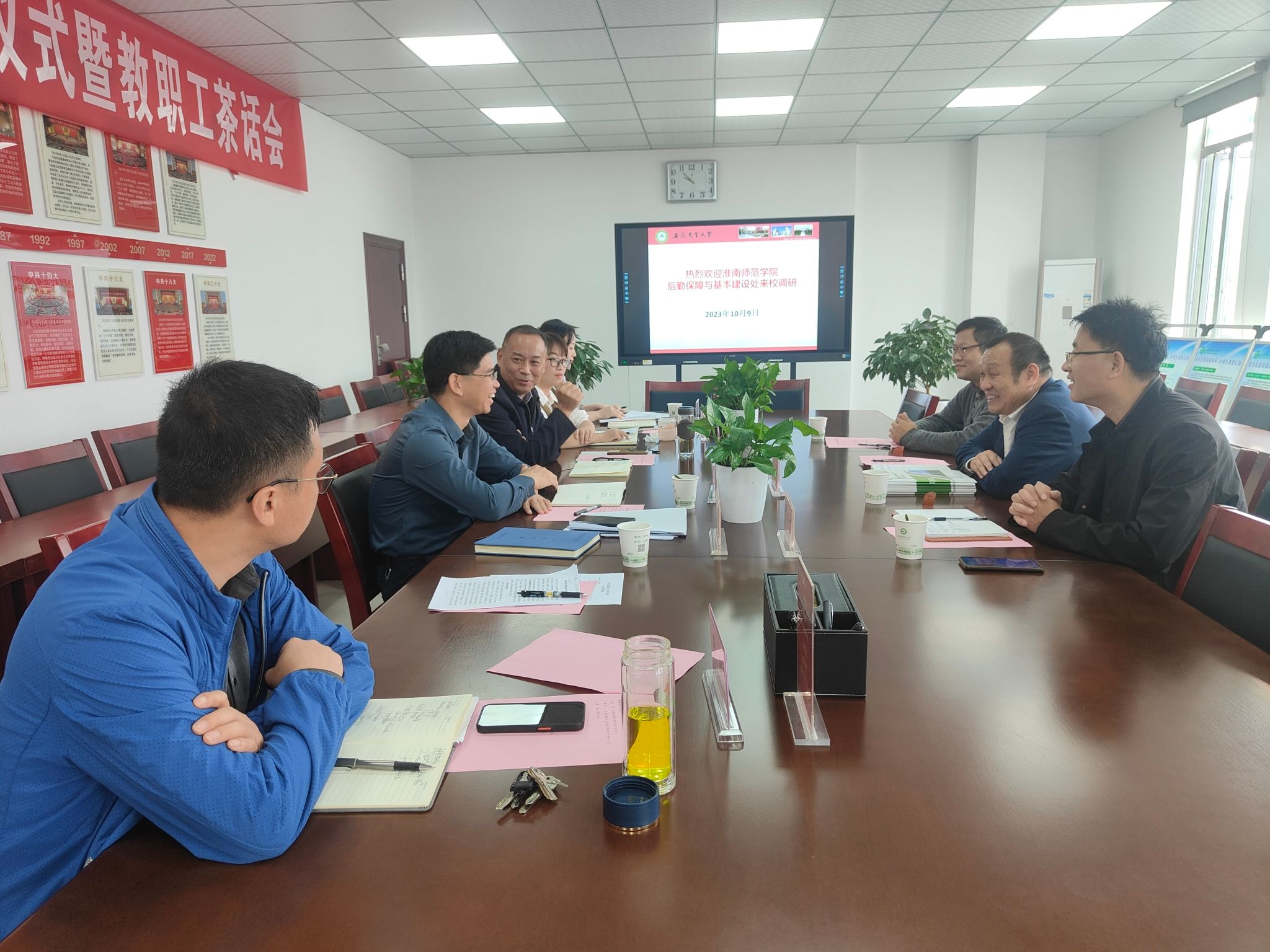 调研会上,徐博简要介绍了淮南师范学院后勤保障与基本建设处的基本情况,以及此次调研的内容,表达了与我校总务部门进一步交流互动的意向和建议。江海波介绍了我校及总务工作的基本情况,就食堂、物业等方面的管理制度和重点工作做了简要的说明。部分管负责人和相关科室报告了我校总务工作的具体实际。