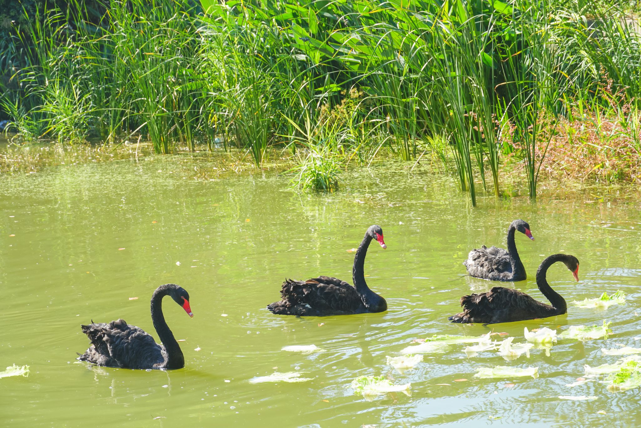 黑天鹅和大白鹅入水后,很快适应了环境,在水面或翩翩起舞,或单腿游弋,或相互追逐,荡起一圈圈粼粼的波纹,黑白“珍珠”交相呼应,高贵优雅、婀娜多姿,如同一幅灵动的、舒展的、诗韵的写意画卷,路过的师生和赏客纷纷驻足观赏拍照。