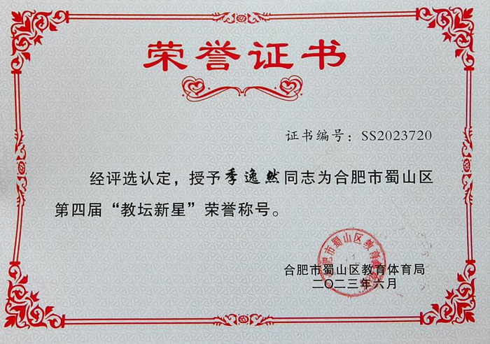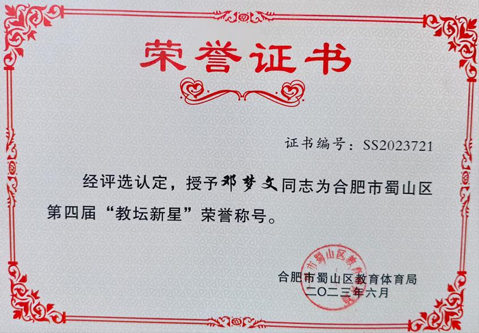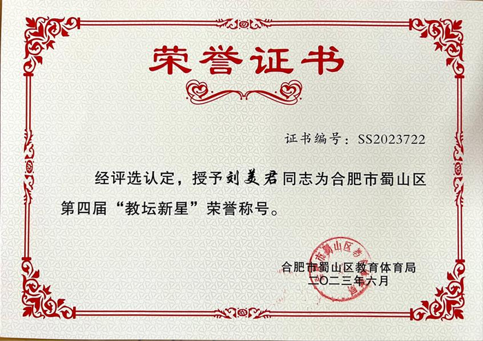 金秋时节,硕果累累,桃李芬芳。在这收获的季节里,恭喜我园三位老师获蜀山区教坛新星荣誉称号,为幼儿园教师队伍建设又添光彩,用智慧和努力浇灌出丰硕成果。
