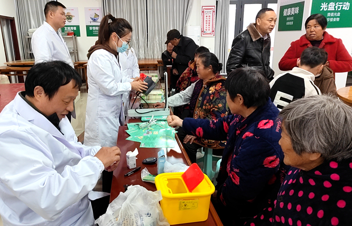 在大畈村,校医院选派了内科、外科、妇科、检验科等科室人员组建了义诊服务小分队,为大畈村村民开展血压测量、血糖测定、心肺听诊等医疗服务,认真地询问村民们的身体健康状况,为村民们解疑答惑,针对不同群体的不同病症提出合理的诊疗建议和治疗方案,讲解常见病、慢性病、秋冬季多发病的预防和控制方法。义诊小分队就村民关心关注的营养与健康、药品规范使用等问题进行指导与宣传,现场为义诊的村民发放《常见传染病防治手册》等宣传材料。校医院的义诊活动让村民在家门口就享受到便捷的健康服务,增强了村民的健康保健意识,满足了群众的健康需求。