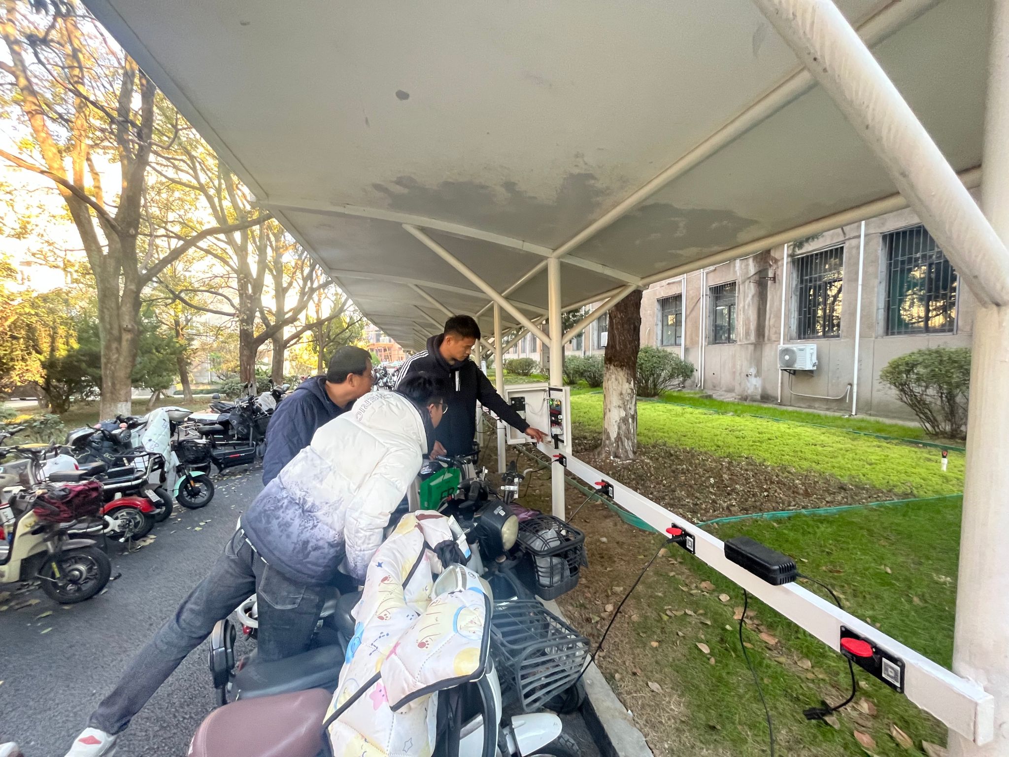 近年来,学校积极倡导学生少购车、多走路,共同维护整洁有序、绿色安全的校园环境,“低碳环保、绿色出行”理念逐渐深入人心。为满足师生电瓶车充电需求,提供安全、优质、可靠的电力服务,总务部运营管理科不断细化服务举措,规范招标程序,引进优质的充电桩服务企业进校服务。同时加强充电桩日常使用管理监督,确保充电用电安全。本次我们重点对充电桩屏幕显示准确度,内部易损元器件使用情况,充电桩桩体接地情况,电缆插头松紧度情况,灭火器柜摆放位置及灭火器有效期限等进行全面检查,及时查找问题、排除隐患。同时,我们还组织能源管理服务中心和充电桩服务公司向师生宣传安全用电知识,引导师生安全、文明使用充电桩,引导学生正确使用充电插座跟踪功能,有序错峰使用充电桩,提升充电效率,让绿色安全出行更便捷舒心。
