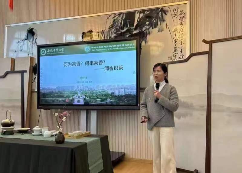 活动邀请茶树生物学与资源利用国家重点实验室翟小婷博士、2021级茶学本科专业高文慧和陈珊珊两位同学,为大家作题为“何为茶香?何来茶香?——闻香识茶”的专题报告及茶艺展示。