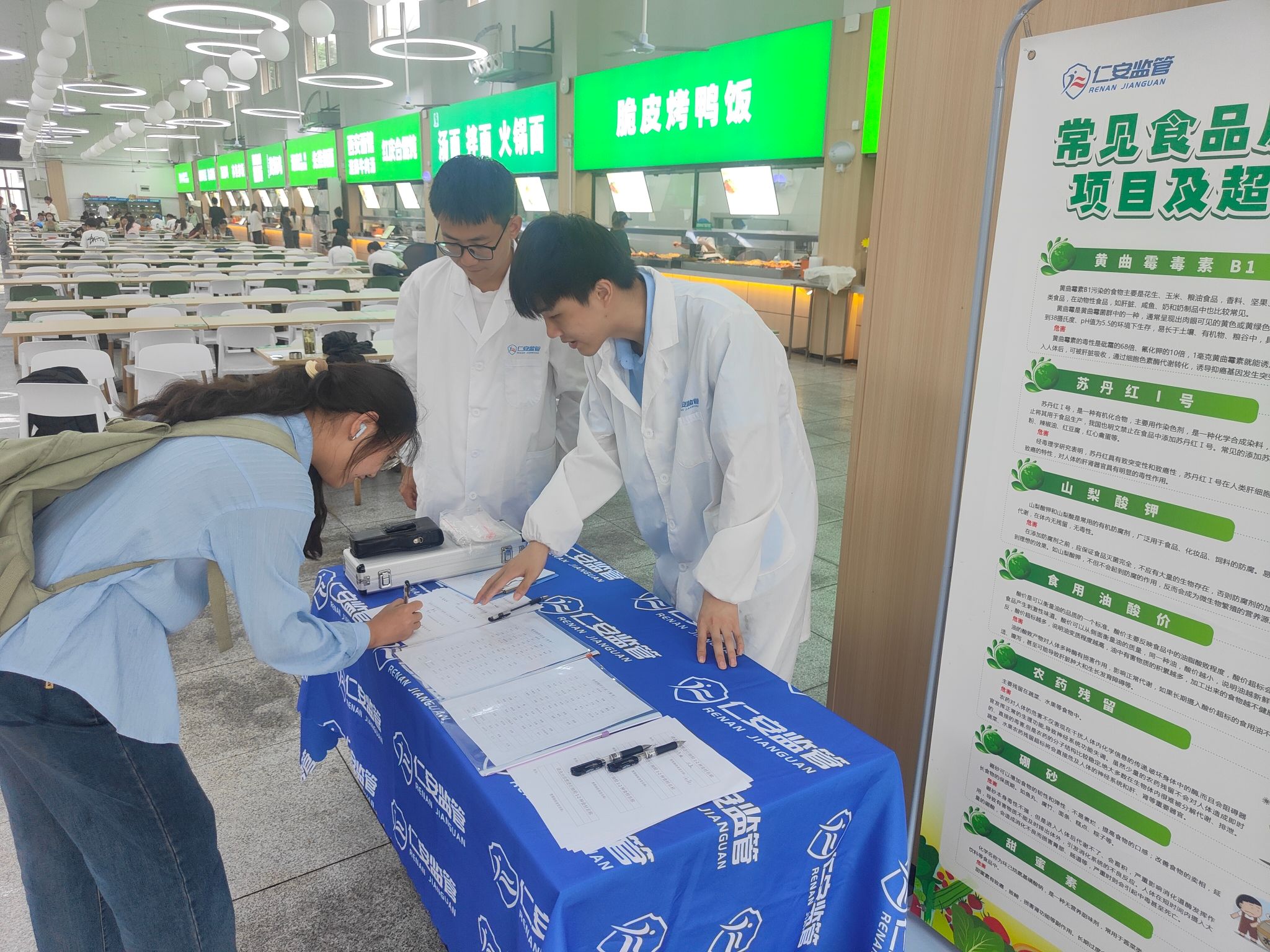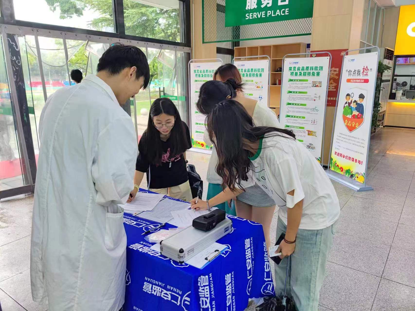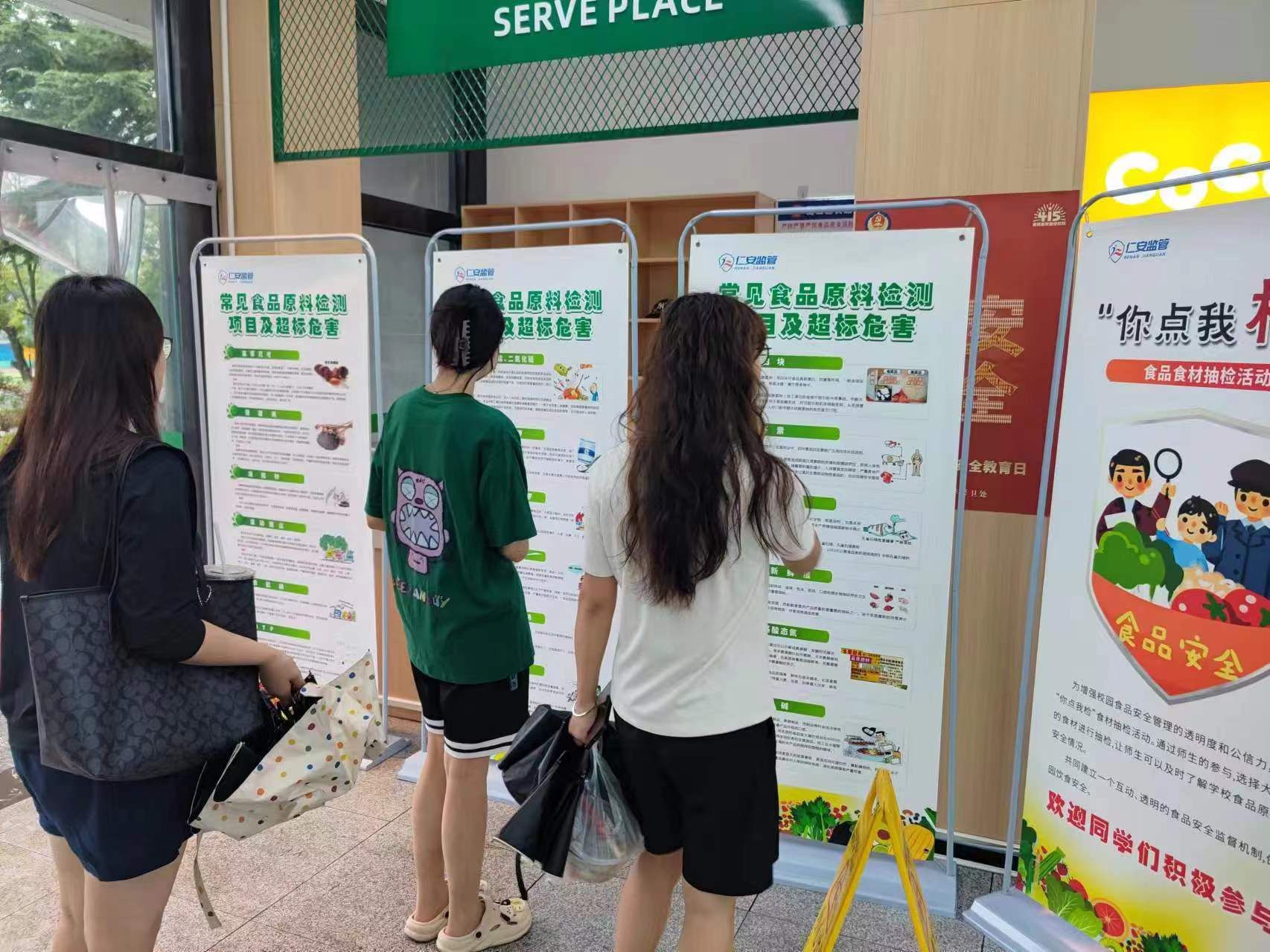 活动采取面对面方式,回应师生关切;通过海报展板展示,介绍常见食品原料检测及超标危害。同学们在“吃得放心、吃得安心”的同时,获取到科普知识。