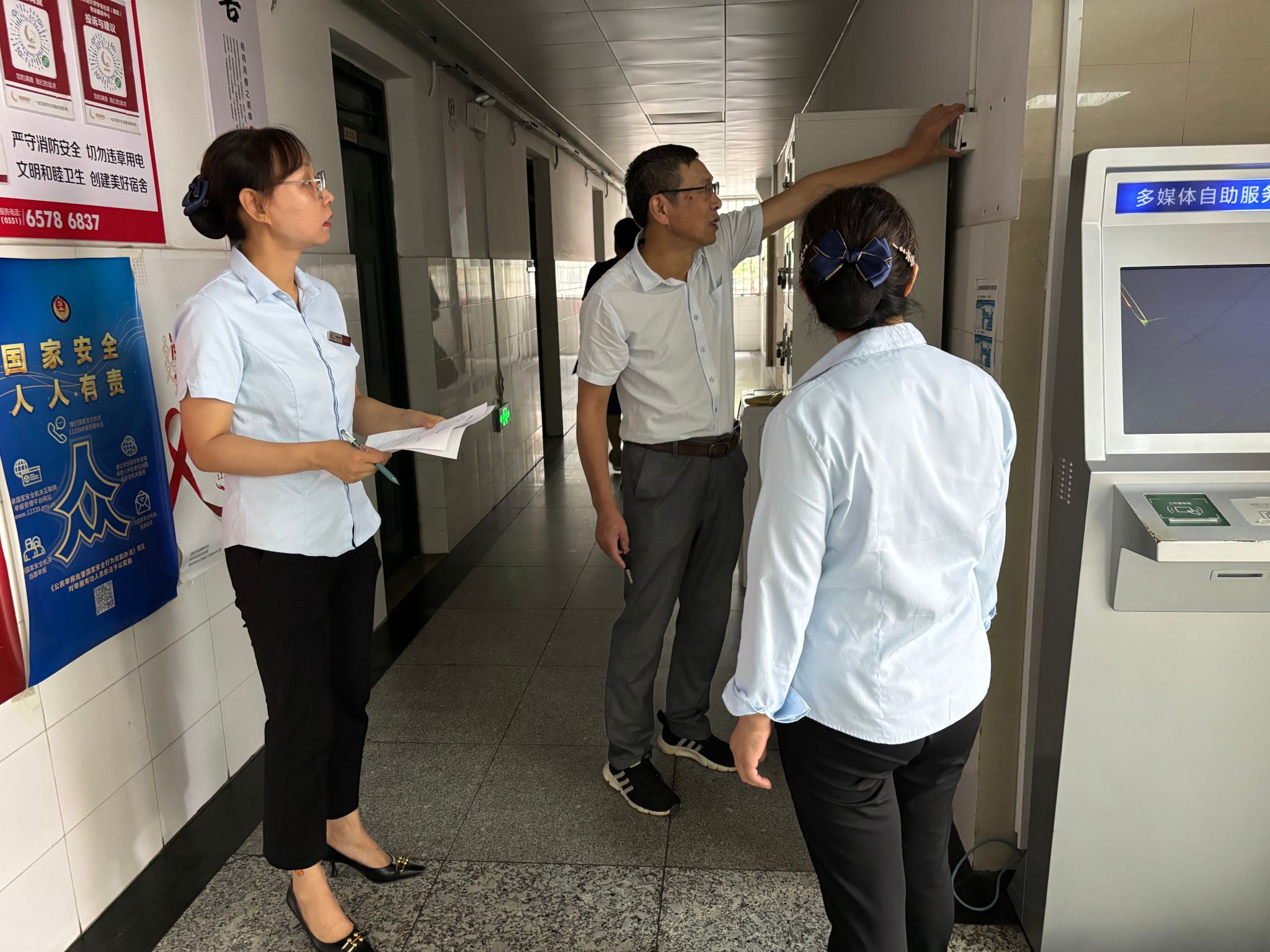 此次检查重点是教学楼宇、办公楼宇、图书馆和学生宿舍水电安全、消防安全、环境卫生等方面的问题。针对检查中发现的公共区域卫生死角及安全隐患,能够立即整改的立即整改,不能立即整改的形成整改清单,限期整改。同时也提醒各物业做好暑期重点清洁和维修工作计划,要利用假期进一步加强对教学楼宇的公共设施设备的维修维护工作,针对假期进场的施工改造项目,协助做好现场巡查和管理。全心全意为广大师生营造干净舒适的校园环境。(文图/李一玉 编辑/陶伟 预审/史青松 审核/郑雪林)