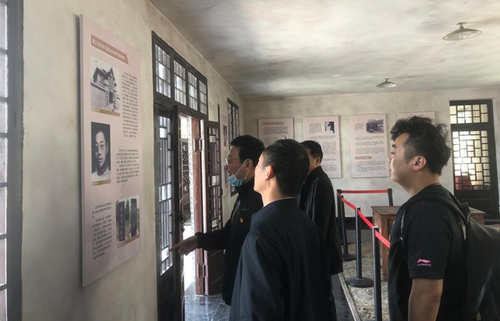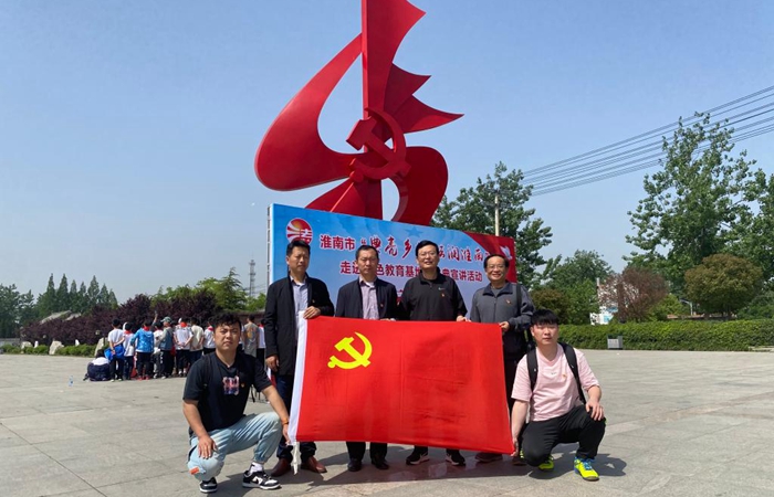 支部党员首先来到淮南寿县安徽第一面党旗纪念园接受革命传统教育。1923年,伴随着中国新民主主义革命的大潮,安徽省第一个农村党组织--中国共产党小甸集特别支部在寿县小甸镇建立,使这个名不见经传的偏僻小镇一跃成为中国共产党早期革命史中的“红色重镇”。小甸集特支是安徽省最早成立的农村党支部,飘扬起安徽第一面党旗。特支培养和发展的优秀党员,为中国新民主主义革命输送了一大批重要革命力量,为中华民族独立和人民解放做出不可磨灭的贡献。