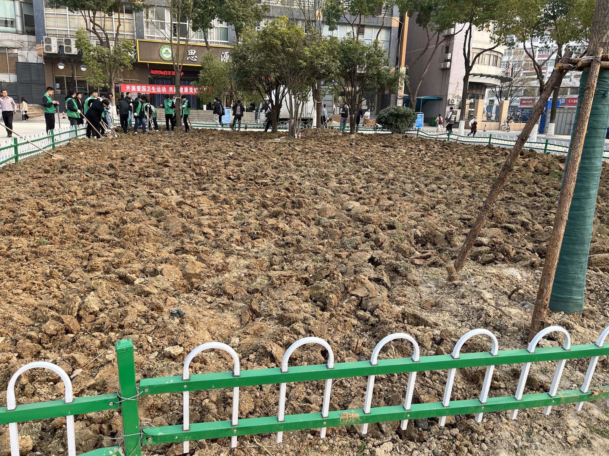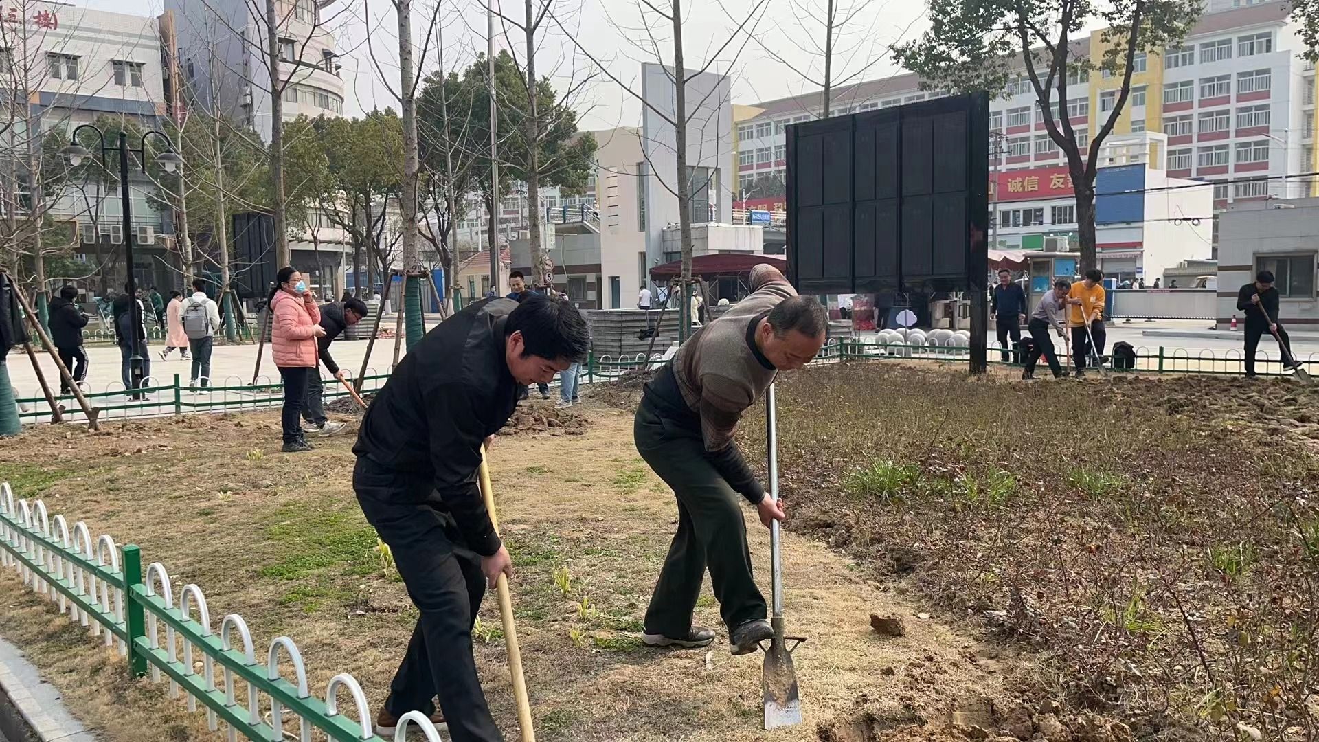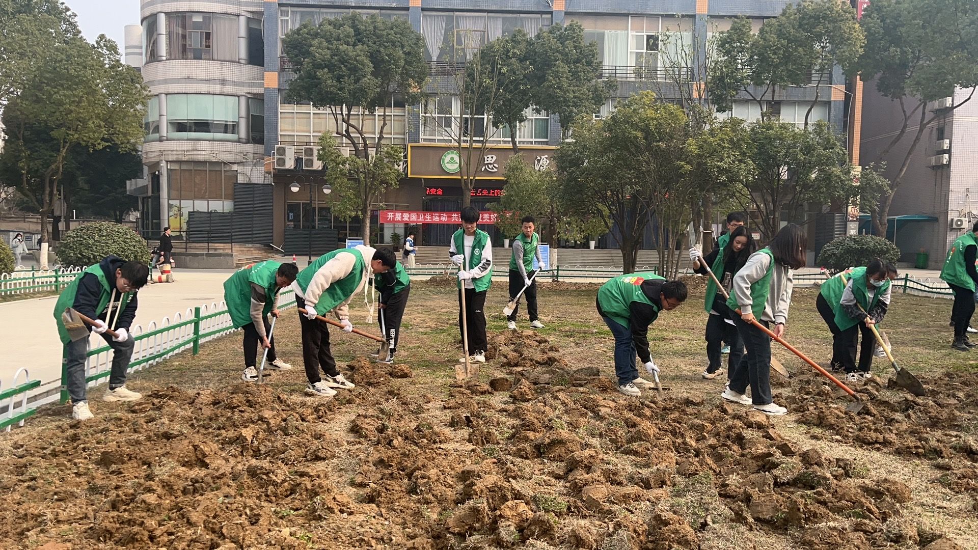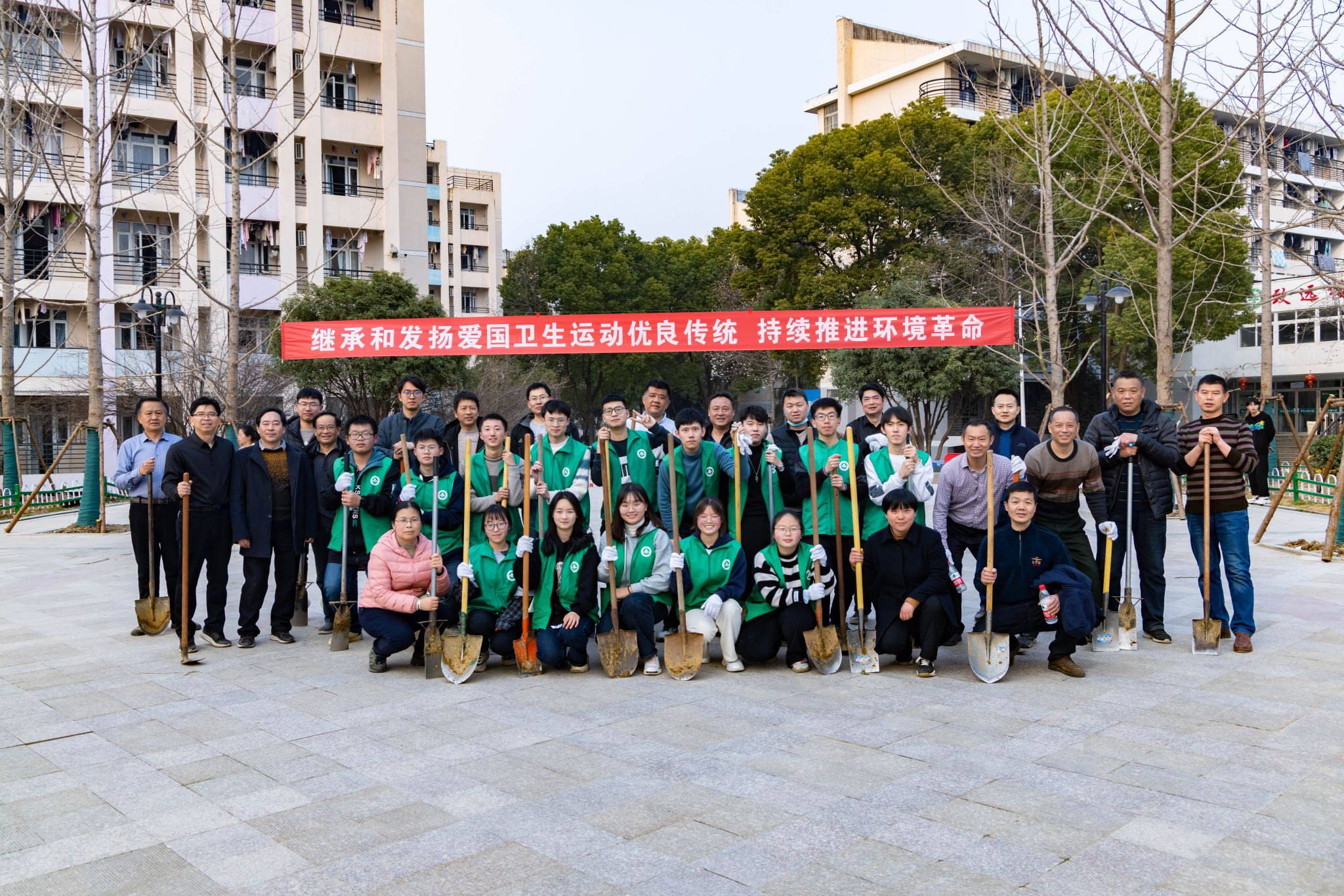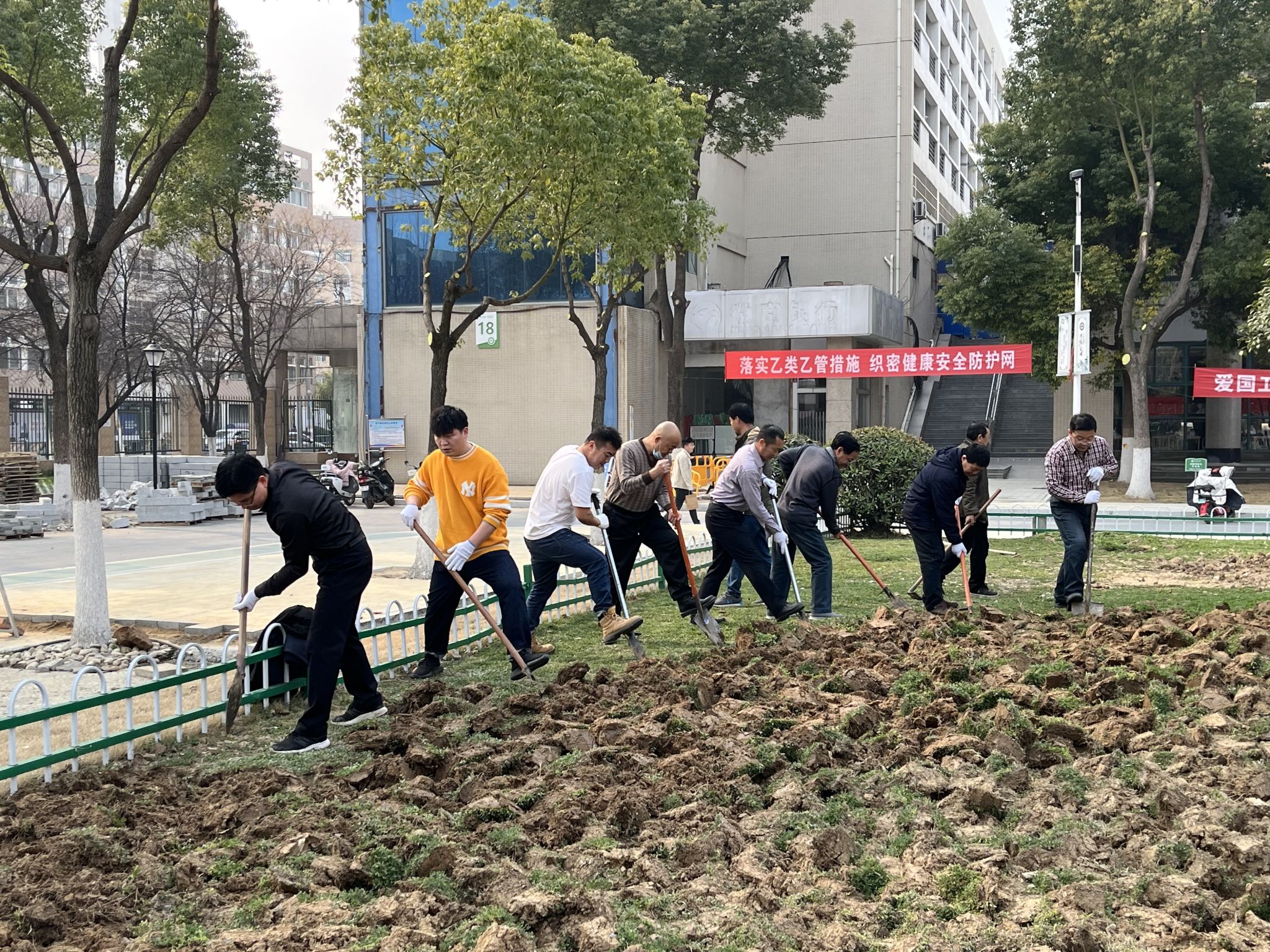3月1日下午,能源物管支部、饮食中心支部、学生公寓支部组织30多名党员、联合学生社区北区的10余名学生监督员、楼层长开展了“践行爱国卫生运动,共建美丽校园”主题党日活动,每个人都拿起铁锹、撸起袖子、甩开膀子对大学生公寓门前广场4片绿化带进行清扫、除草、翻地、松土。