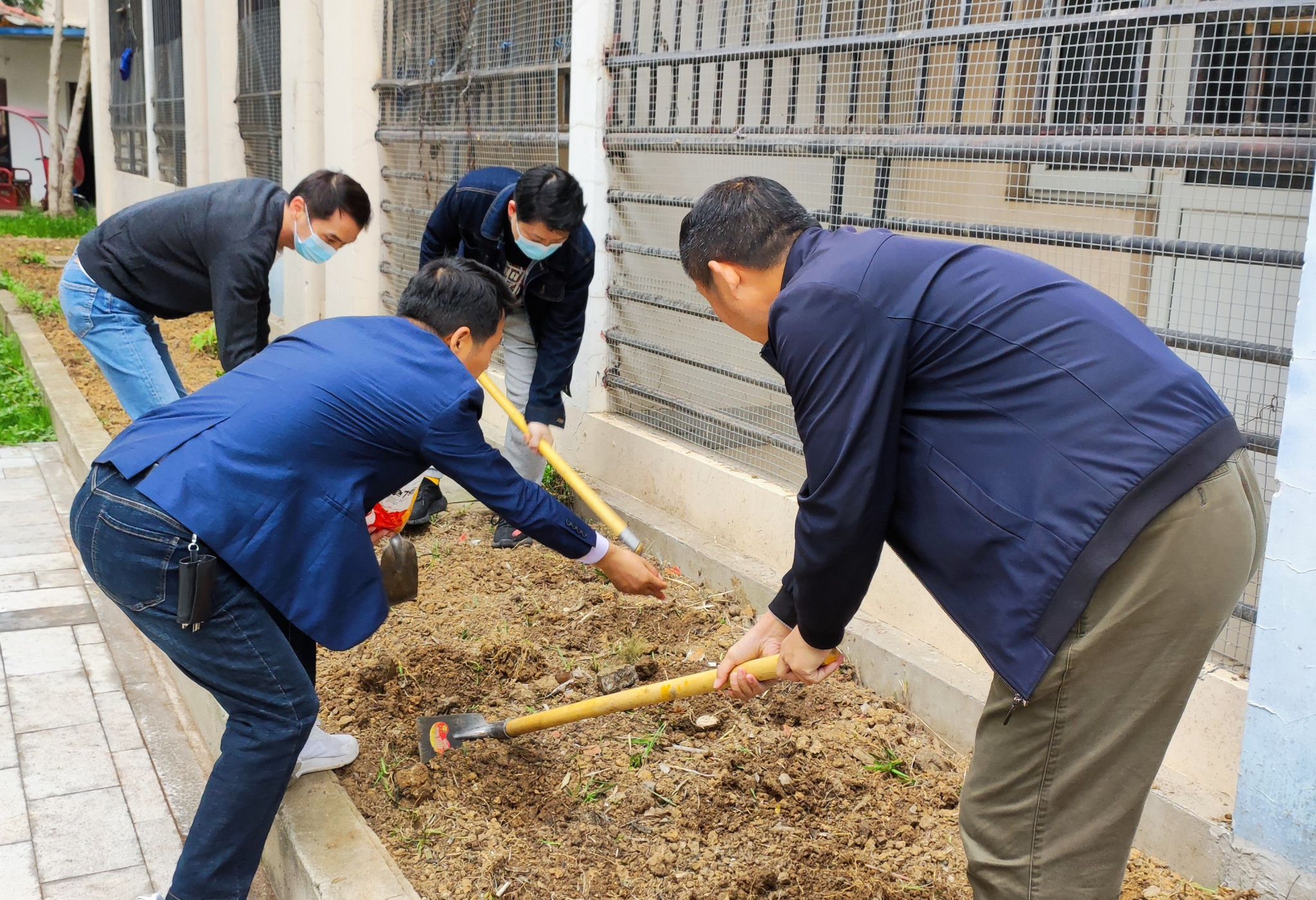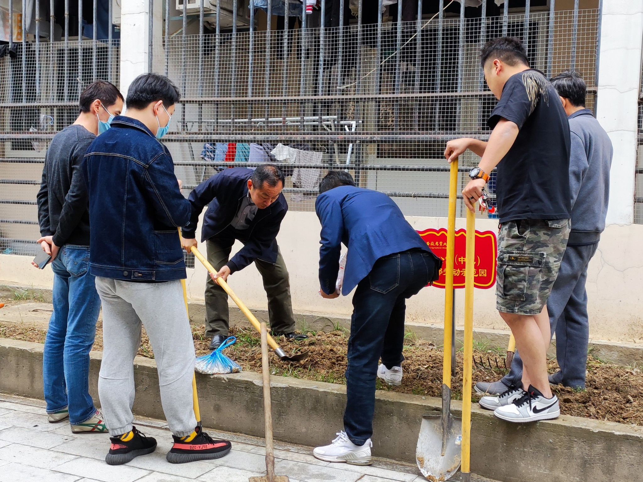 专题学习结束后,支部书记史青松带领全体党员和发展对象到公寓16号楼的支部劳动示范园区进行劳动实践活动,大家带着劳动工具和种子,兴致勃勃地来到实践地点。史青松为大家讲解了翻地、平整、播种的方法及注意事项,并作出了示范。随后,党员们纷纷卷起袖子开始实践,清理杂草、平整土地、种植种子……每个环节都一丝不苟,干得热火朝天。整个劳动实践过程配合有序,忙碌的身影在公寓内成为一道别样的风景线。