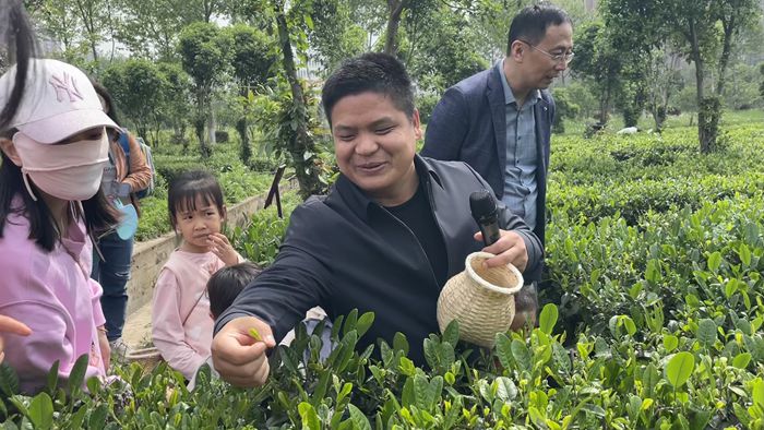 本网讯 人间四月天,茶香溢满园,翠芽沐春光,童行采茶忙。茶是春日的第一份邀约,4月20日上午,在幼儿园党支部的组织下,安农大幼儿园的老师们、部分家长和孩子们一同前往位于大杨镇的安徽农业大学国家高新技术农业园,体验和践行“耕读童行”之乐,总务部副部长夏业鲍参与并指导活动。