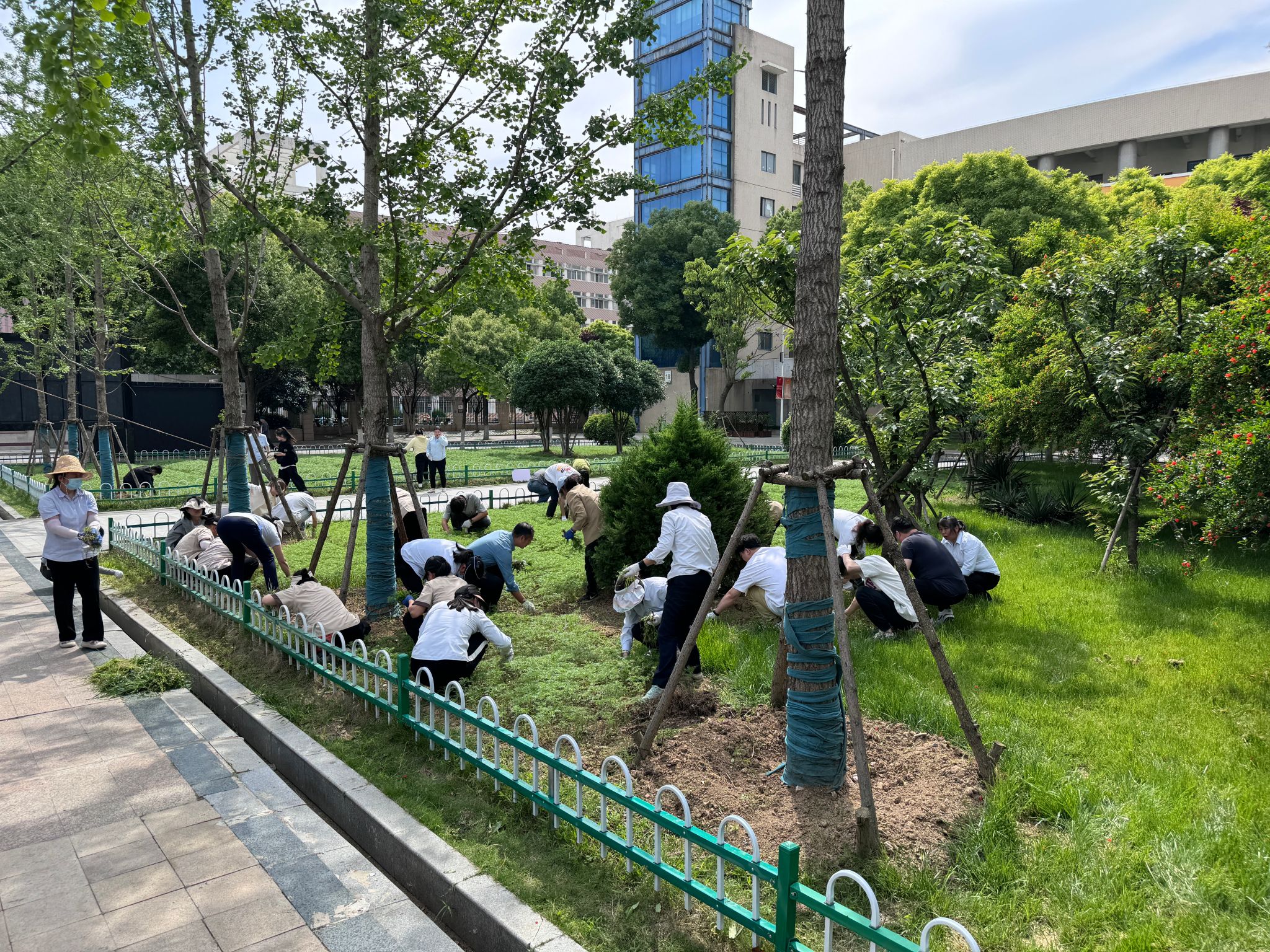 活动中,大家撸起袖子、弯下身子,分工合作、相互配合,在绿化带里进行拔草、除草,用实际行动诠释劳动最光荣,劳动可以创造幸福生活。
