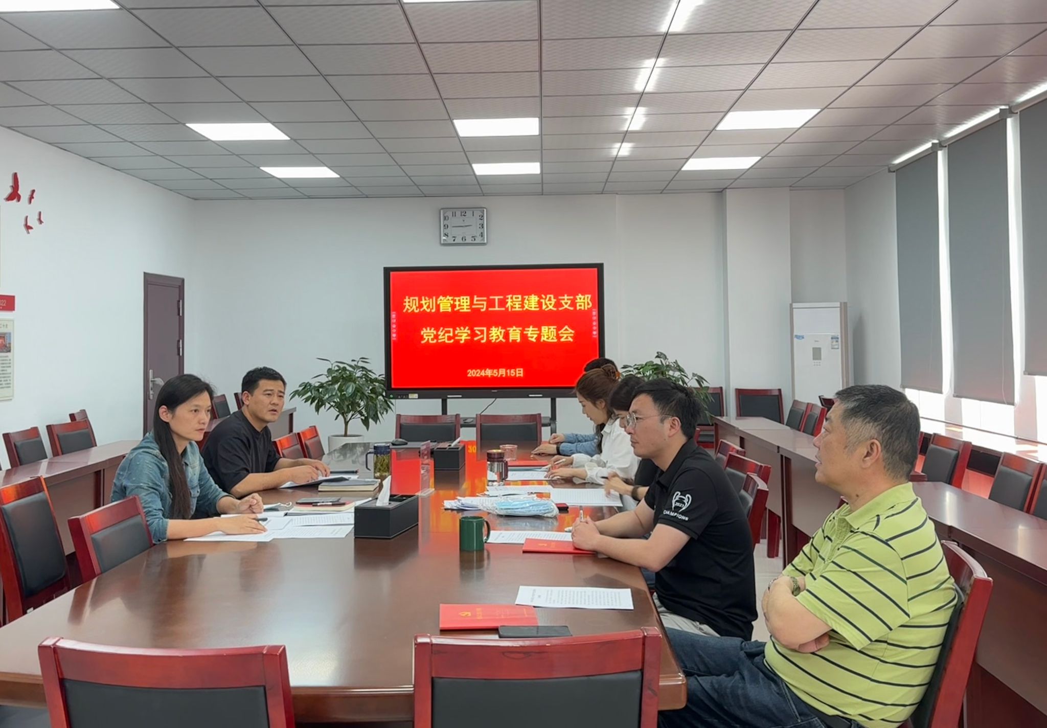 本网讯 5月15日下午,规划管理与工程建设党支部开展党纪学习教育专题会,会议由党支部书记许甘芸主持,支部全体在职党员、入党积极分子参加学习研讨。
