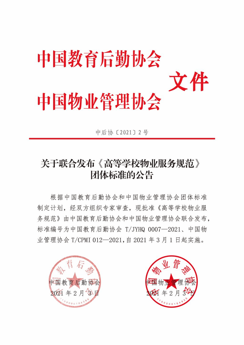 关于联合发布《高等学校物业服务规范》团体标准的公告.pdf