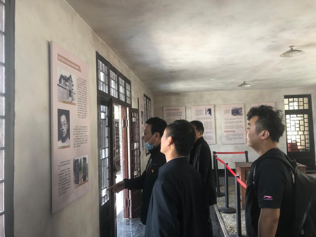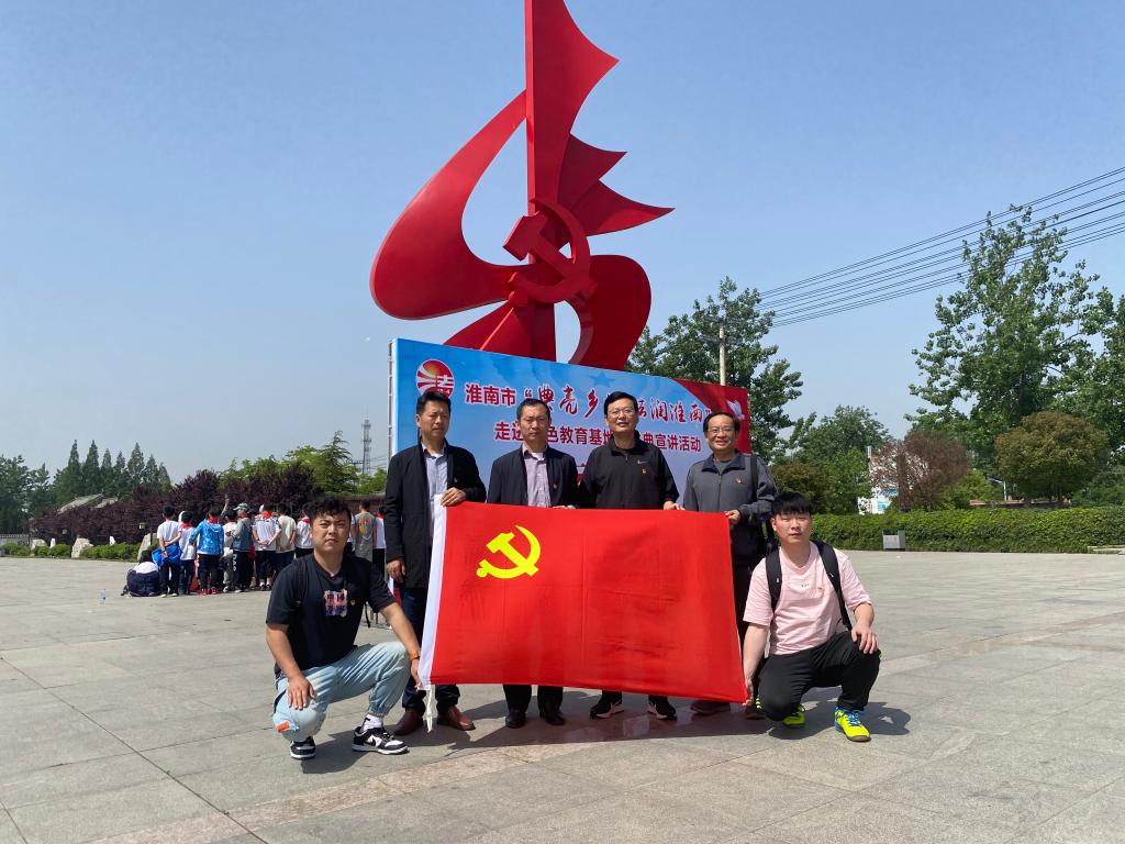 支部党员首先来到淮南寿县安徽第一面党旗纪念园接受革命传统教育。1923年,伴随着中国新民主主义革命的大潮,安徽省第一个农村党组织--中国共产党小甸集特别支部在寿县小甸镇建立,使这个名不见经传的偏僻小镇一跃成为中国共产党早期革命史中的“红色重镇”。小甸集特支是安徽省最早成立的农村党支部,飘扬起安徽第一面党旗。特支培养和发展的优秀党员,为中国新民主主义革命输送了一大批重要革命力量,为中华民族独立和人民解放做出不可磨灭的贡献。